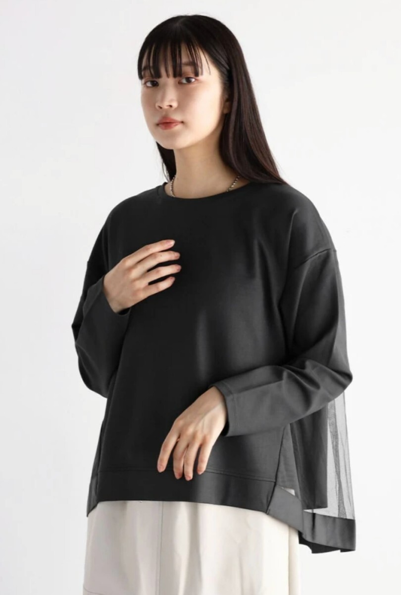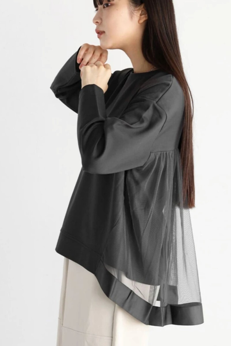 後ろ身頃にチュールを施したデザインで、華やかな着こなしが叶うアイテム。