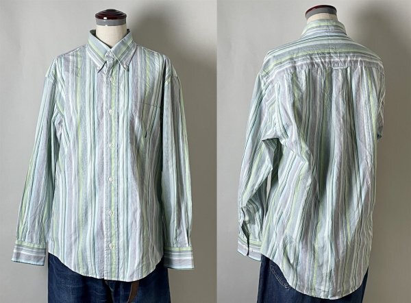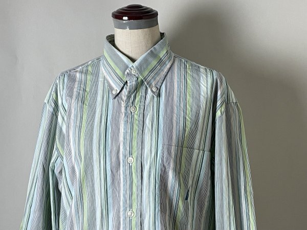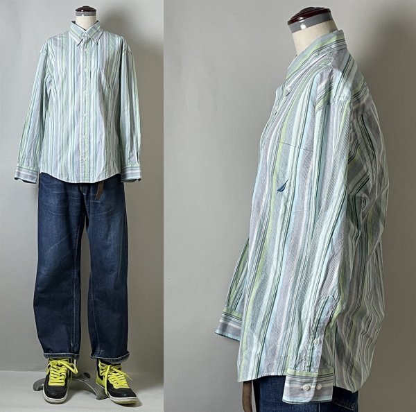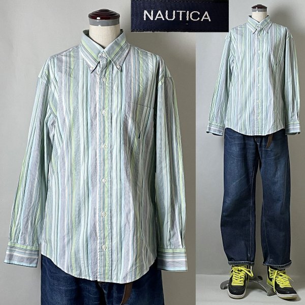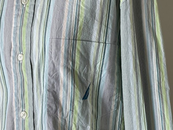 ★【国内正規品 並品 日本製】NAUTICA ノーティカ コットン100% 刺繍ロゴ マルチカラー ストライプ柄 長袖 ロングスリーブ シャツ Sサイズ
