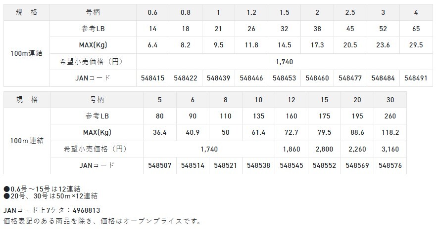 視認性の良いカラーローテーションと幅広い号数展開により、ライトゲームから船釣り、大物釣りまでオールジャンルに対応。