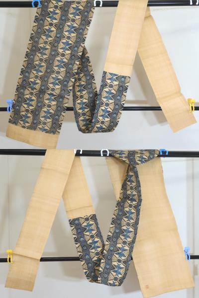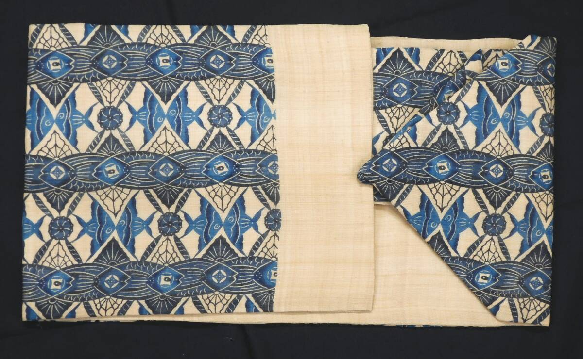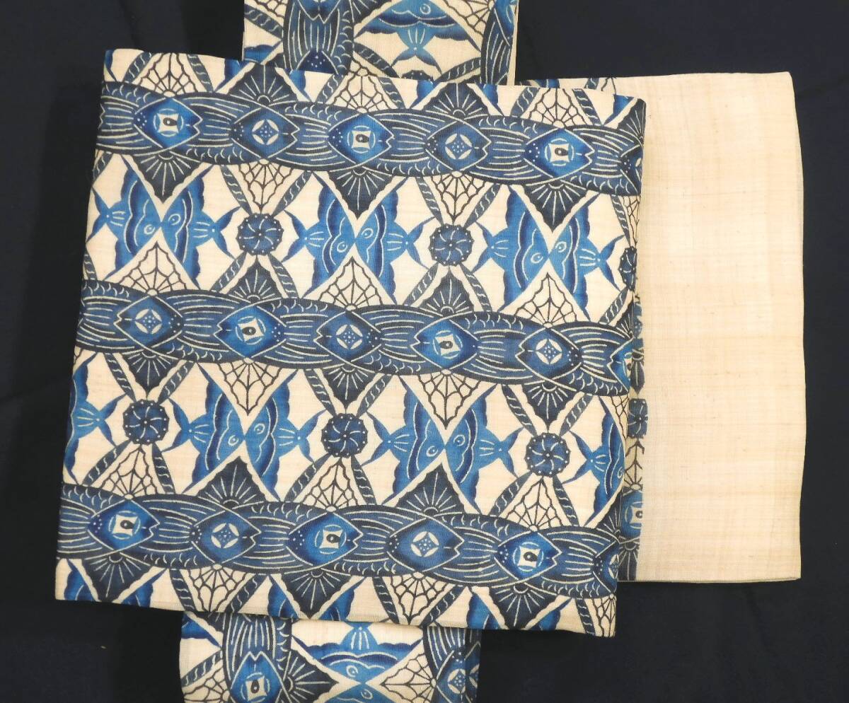 <銀の斧>超逸品・芭蕉・城間栄順氏・魚笑う藍型名古屋帯・喜如嘉の芭蕉布・未使用品・美品