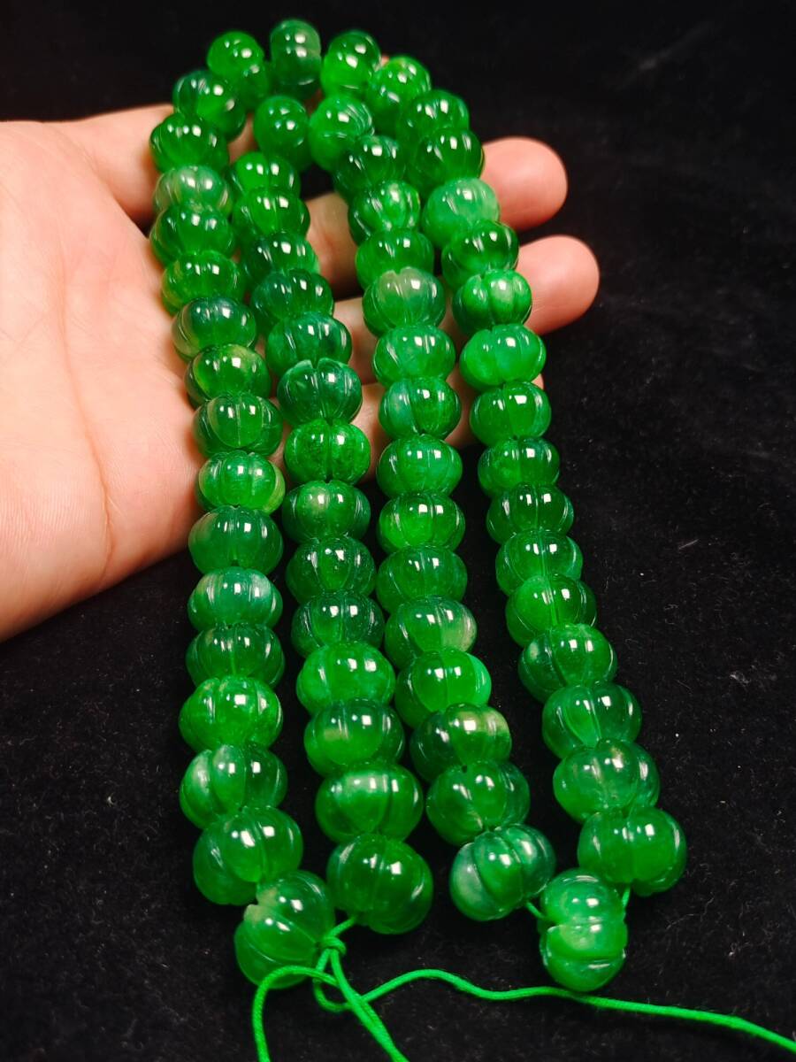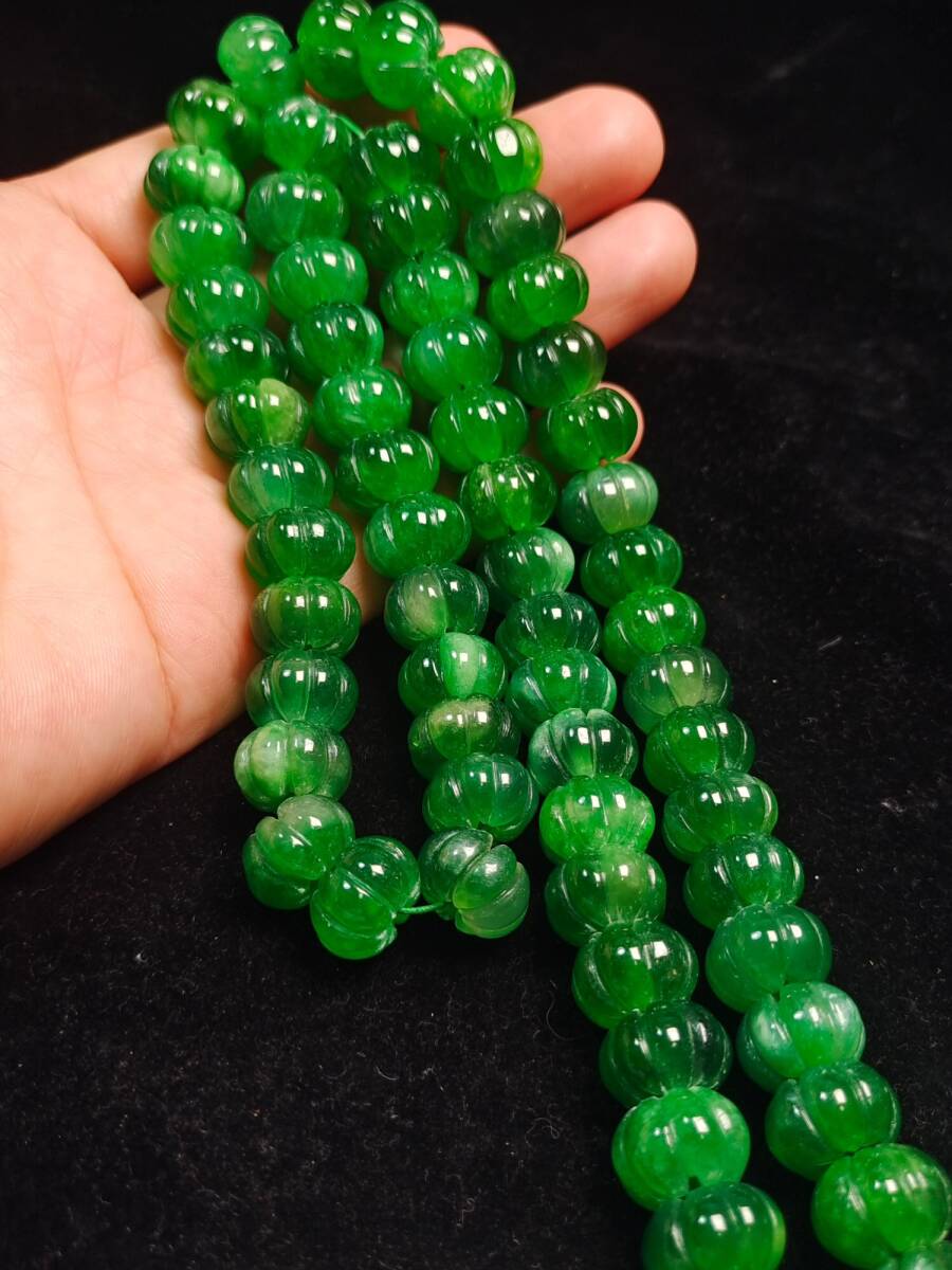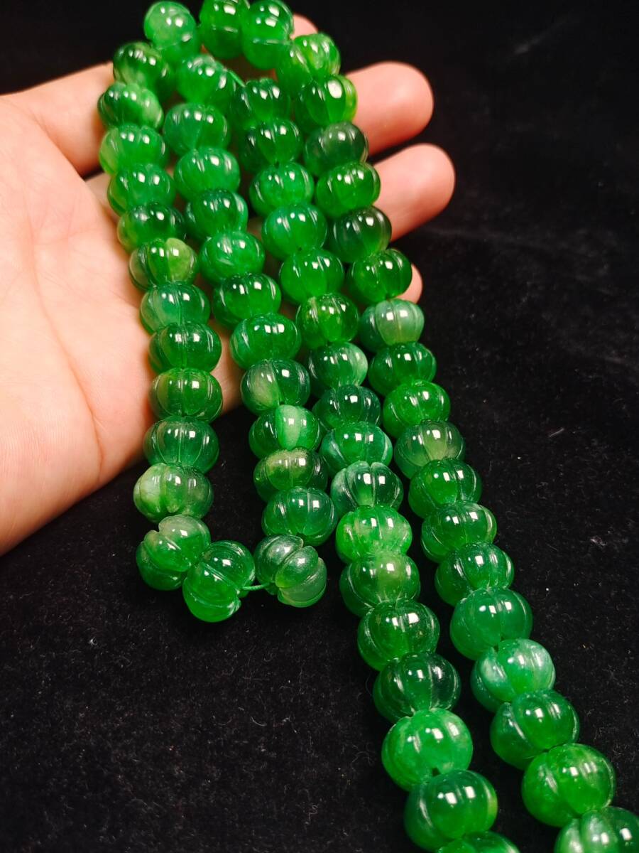 ▽鴻▽ 翡翠製 細密彫 南瓜珠ネックレス 根付 裝身具 古賞物 中国古玩 中国古美術