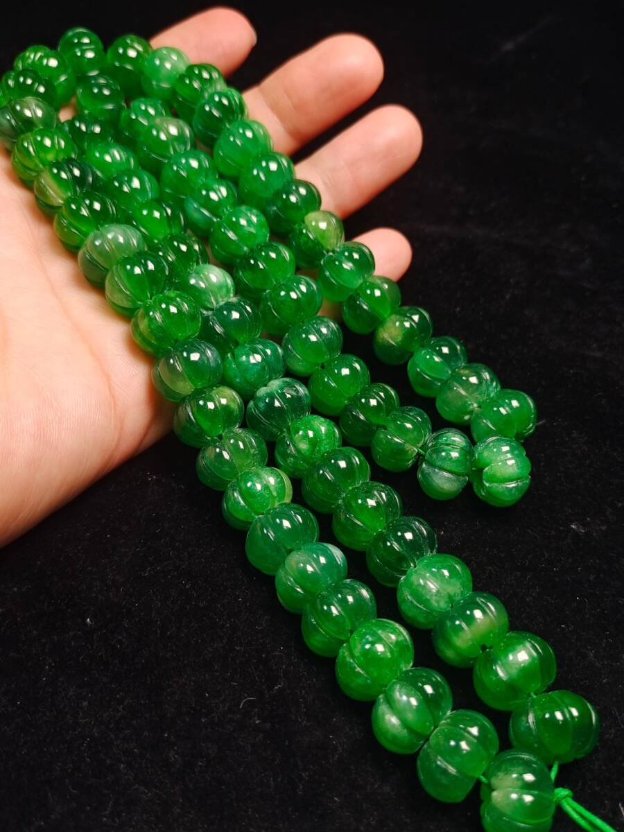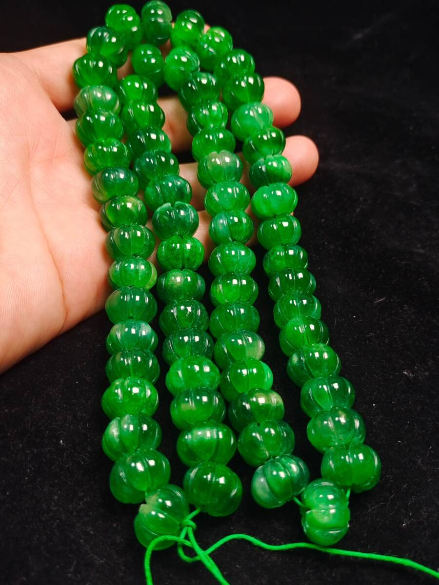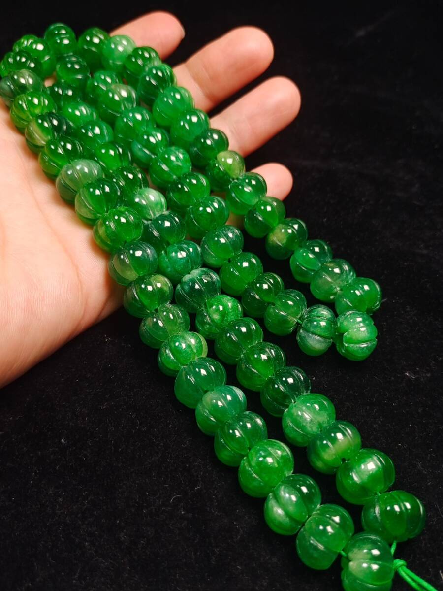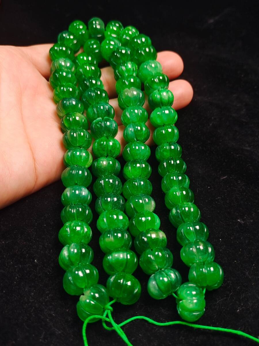 ▽鴻▽ 翡翠製 細密彫 南瓜珠ネックレス 根付 裝身具 古賞物 中国古玩 中国古美術