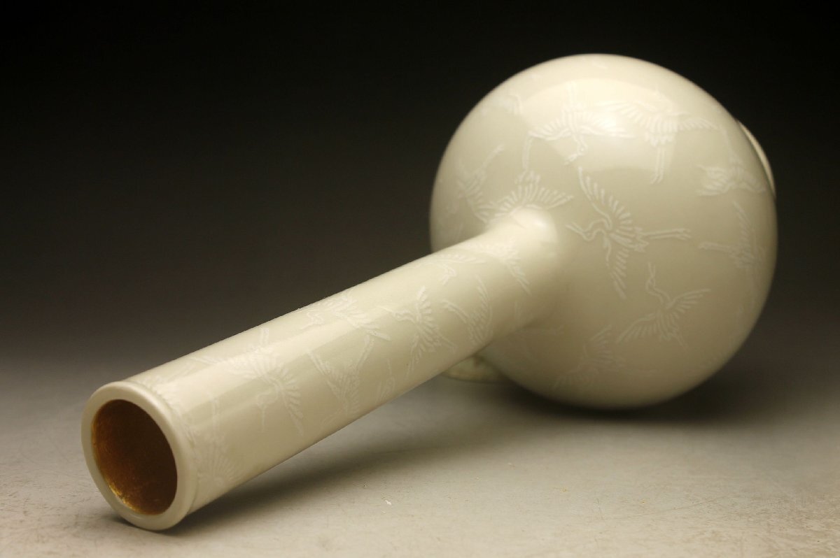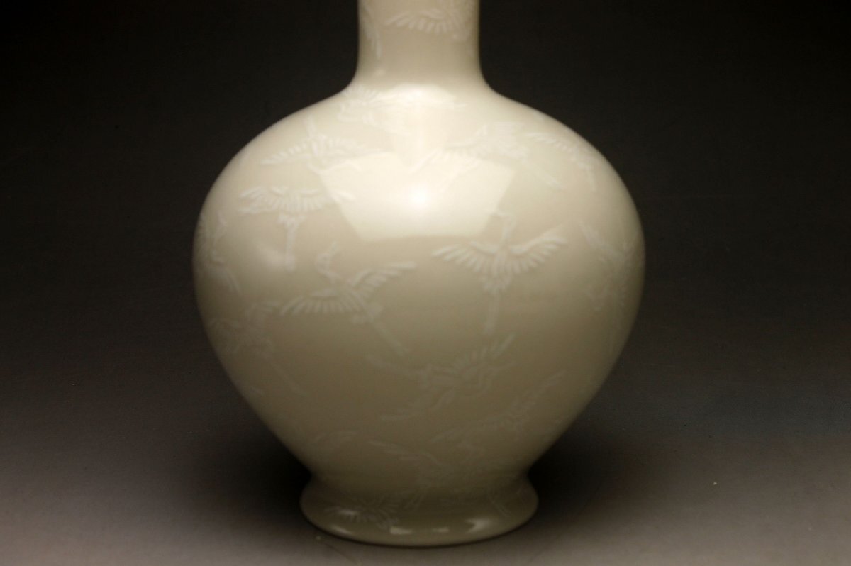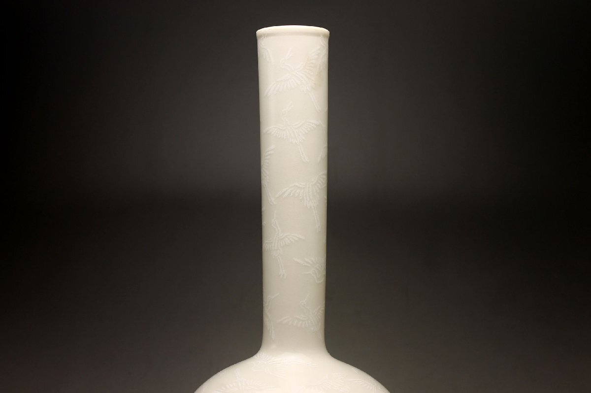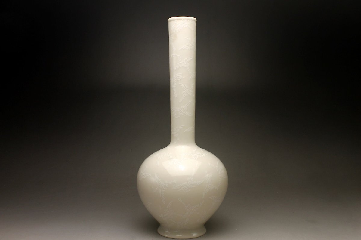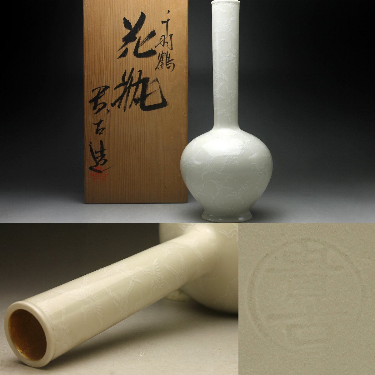 【余韻】 清水焼 京焼 今橋貴古 千羽鶴 鶴首 花瓶 一輪挿★共箱 美品<同梱可>