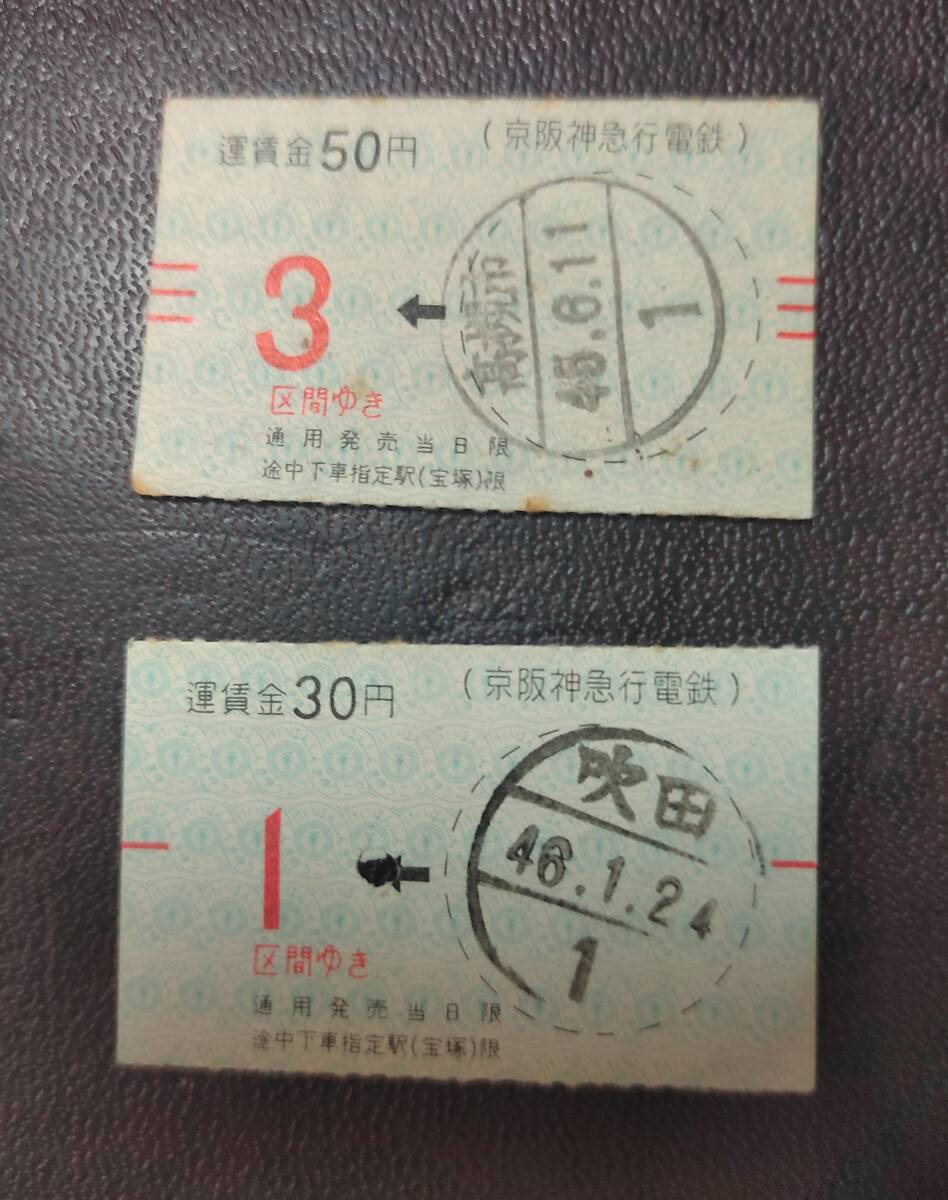 京阪神急行電鉄の吹田発1区間切符:高槻市発3区間切符・運賃50円/切符 /昭和46:45年/(01BKA65)