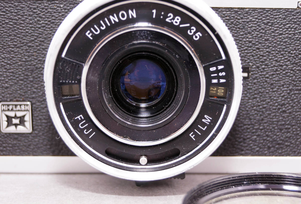 | 商品説明 | FUJICA 35 FS 35mm f2・8 付属品は写真にあるもので全てです MR9/H-D形状互換 625Gにて動作確認(電池は付属致しませんのでご注意下さい) フィルター:東芝SL-C 49㎜ 露出計・シャッター動作しました モルト傷みあり・ストラップ加水分解でべたつきあり・ボディーに凹みあり |
