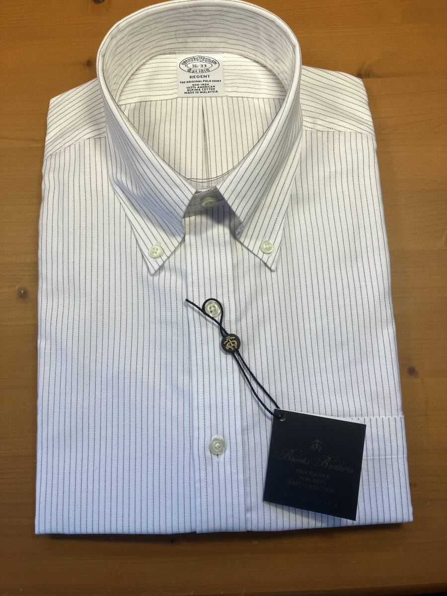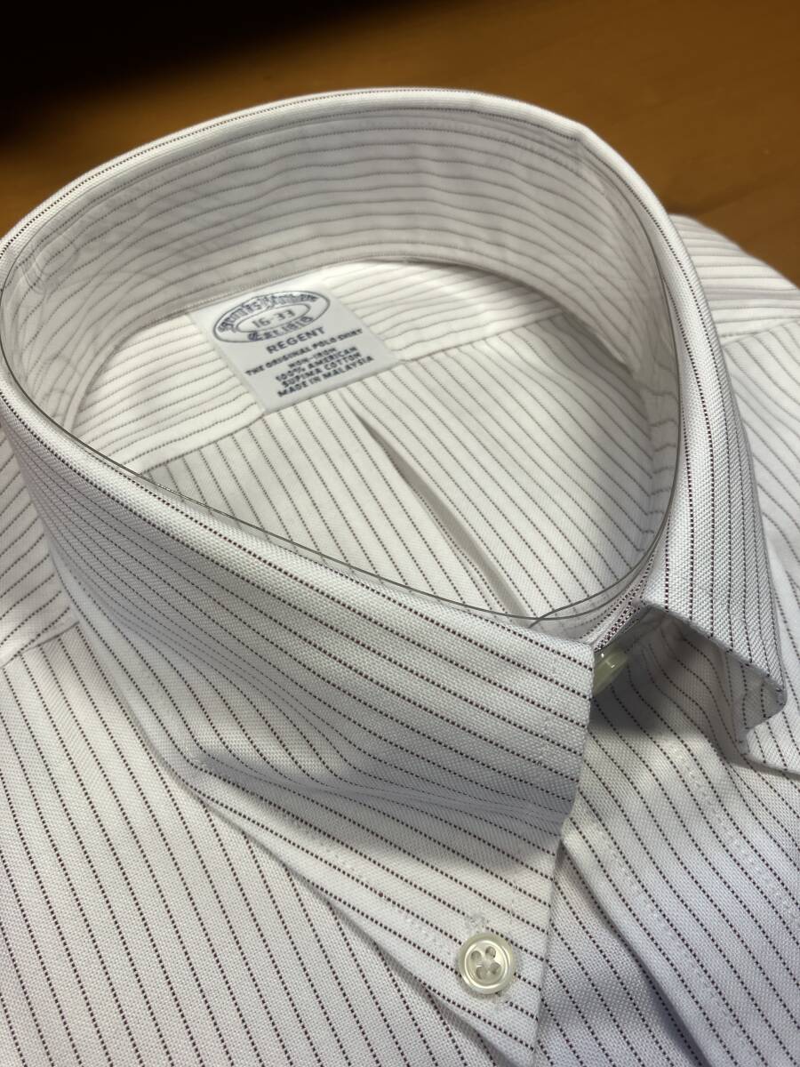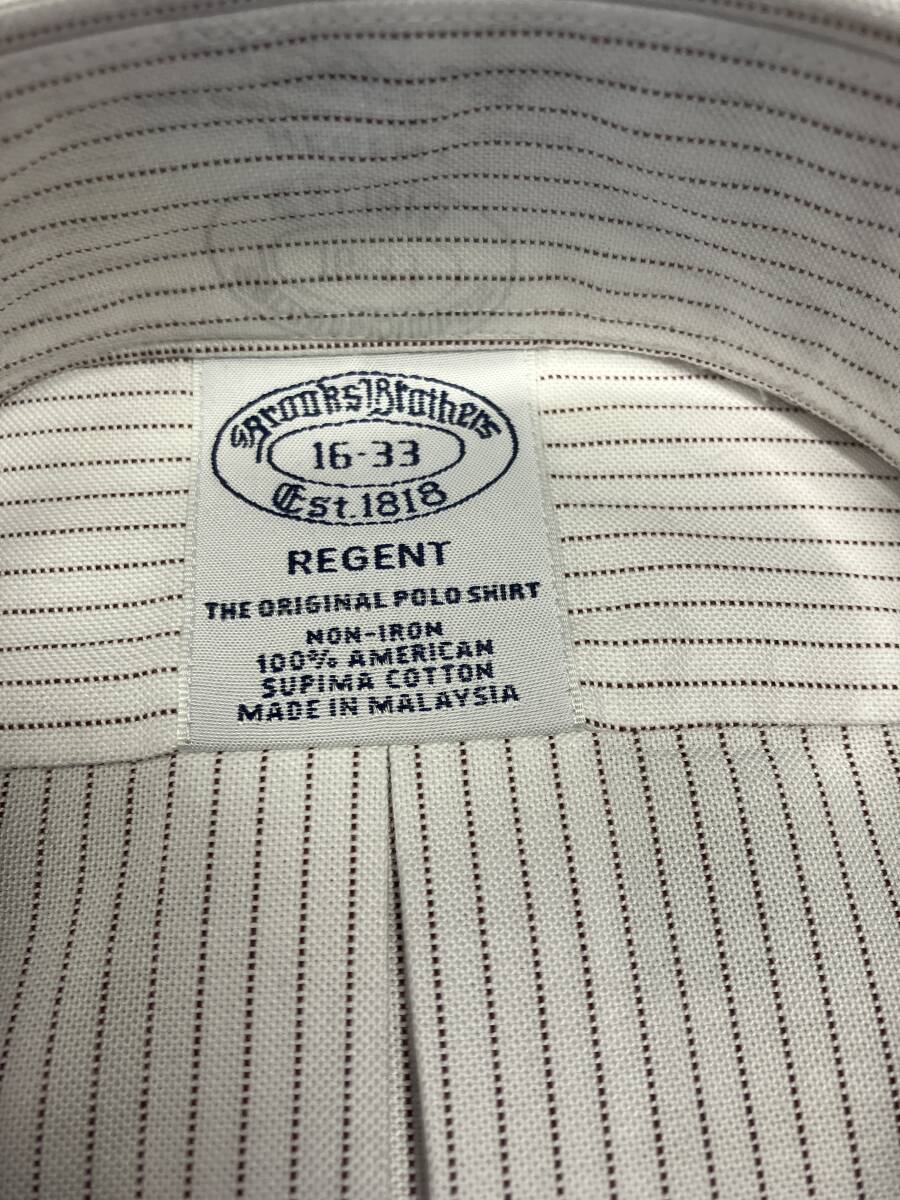 ブルックスブラザーズ 長袖ドレスシャツ ホワイトにブラウンorパープルのストライプ 新品未使用 サイズ16-33