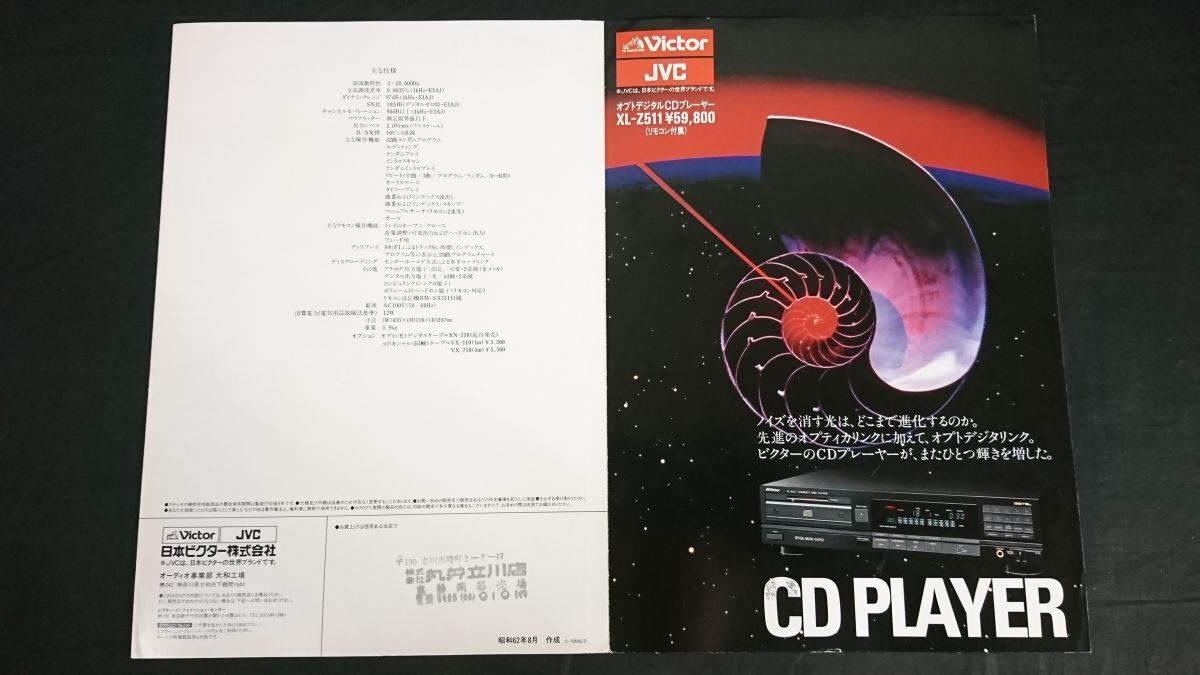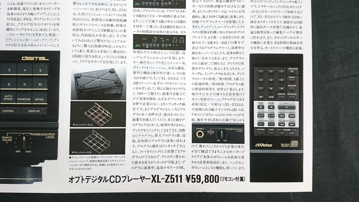 【昭和レトロ】『VICTOR(ビクター) オプトデジタル CDプレーヤー XL-Z511 カタログ 昭和62年8月』日本ビクター株式会社 | |