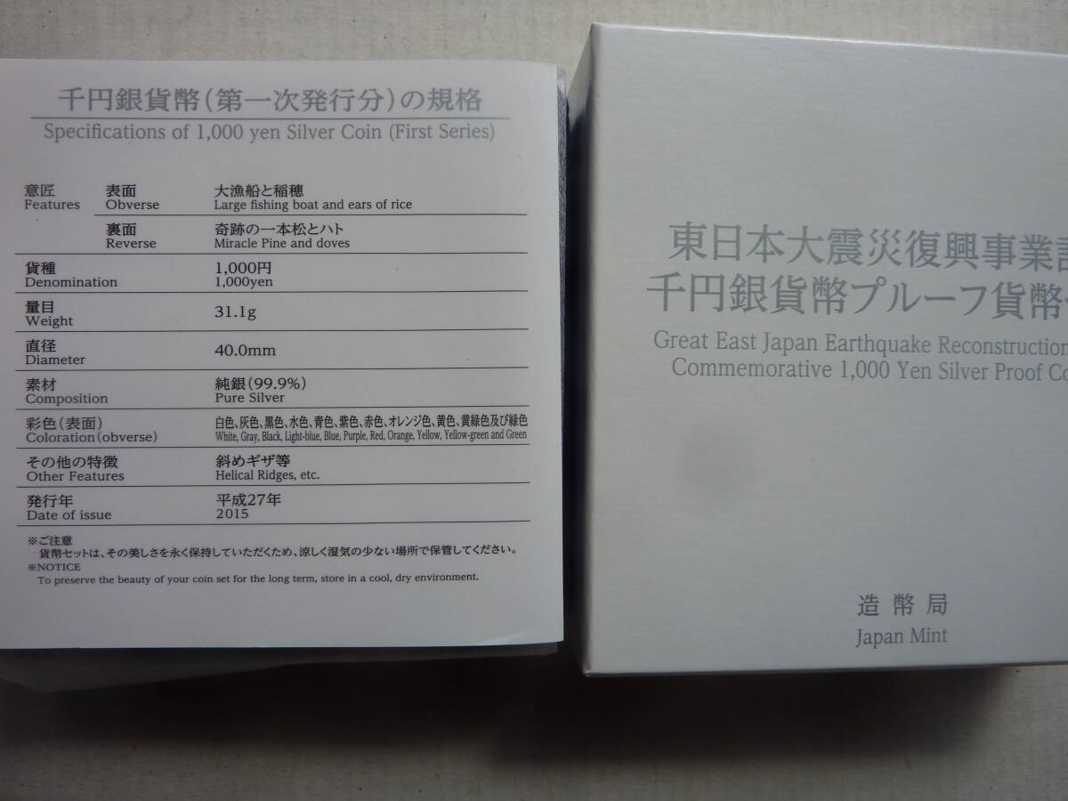 商品の説明 :東日本大震災復興事業記念千円銀貨幣プルーフ貨幣セット 第1次