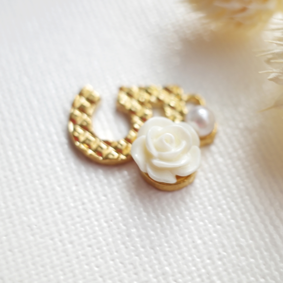| 華奢なチェーンと合わせて使うだけでとても素敵なネックレスのペンダントトップになります パールの存在が可愛くってアクセントになればと思います! 一個での出品です☆ タテ1.8㎝×ヨコ1.5㎝ 他のモノとのおまとめの際には送料最大で185円(クリックポスト)で発送できますので 他のパーツもよければご覧ください☆ | |||
