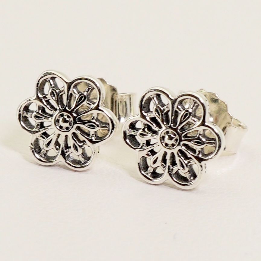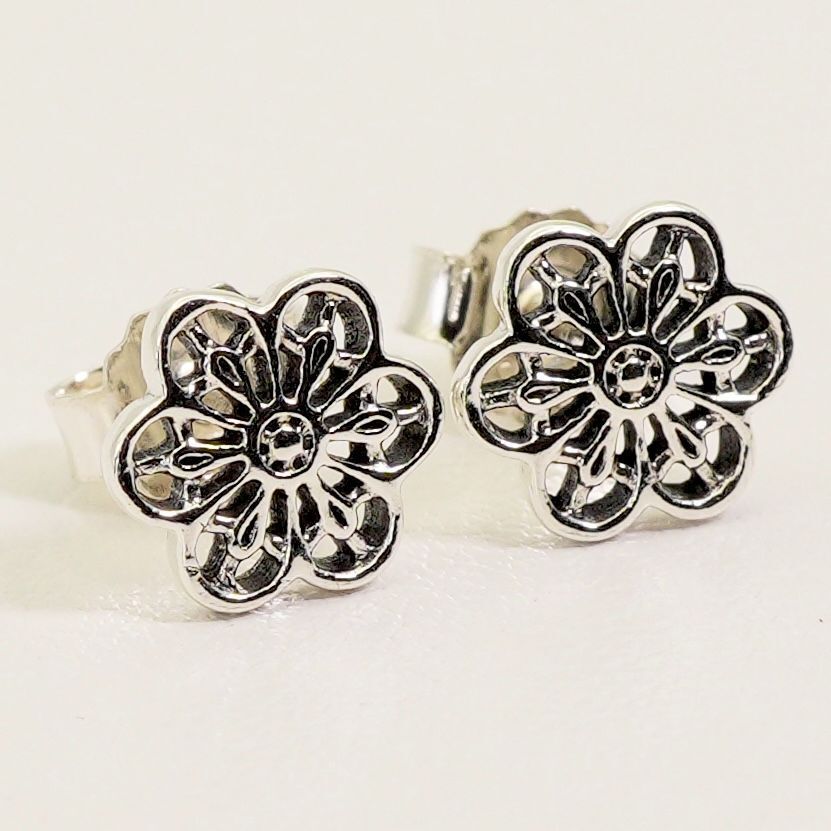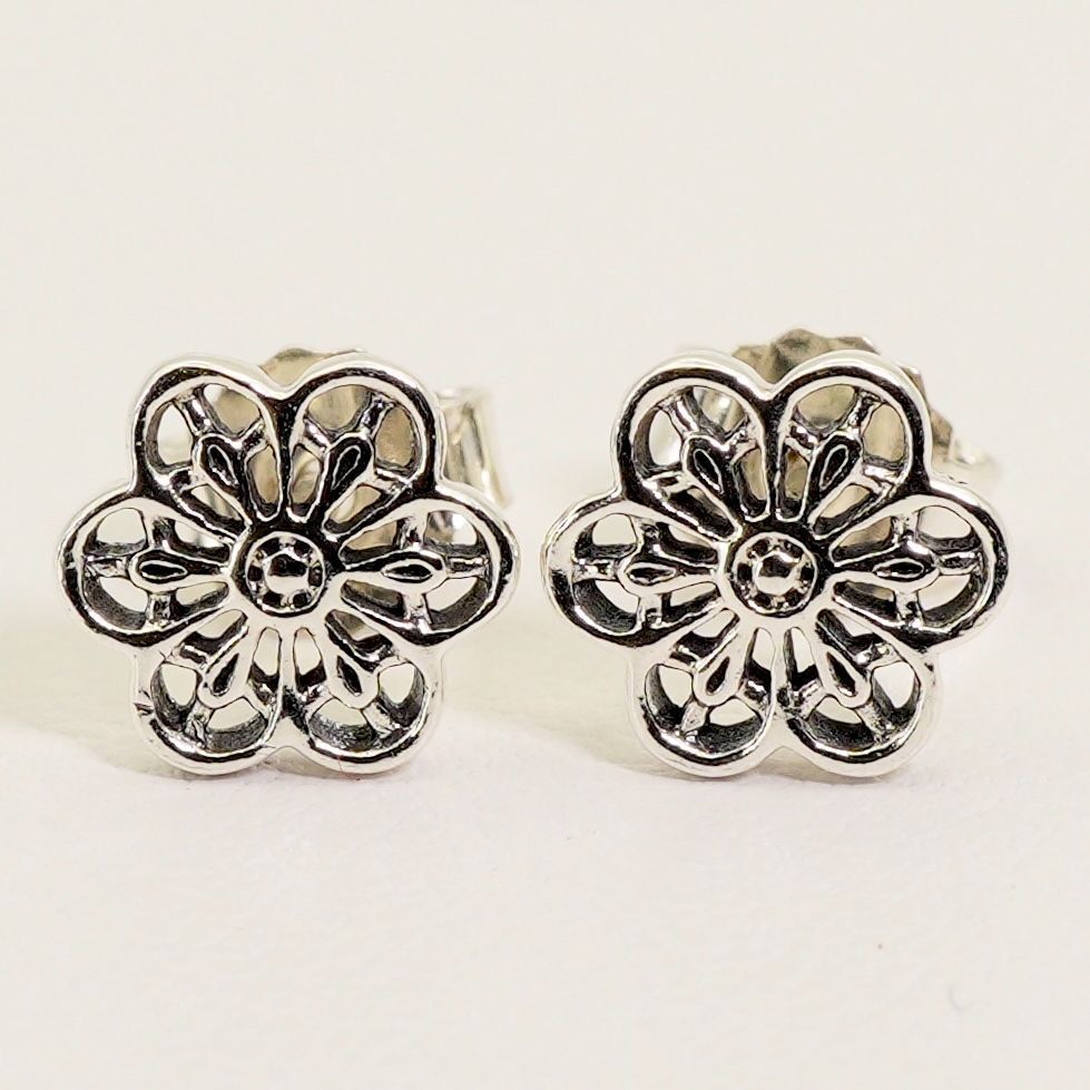 極美品 パンドラ シルバー フラワー スタッド ピアス/24-5818S
