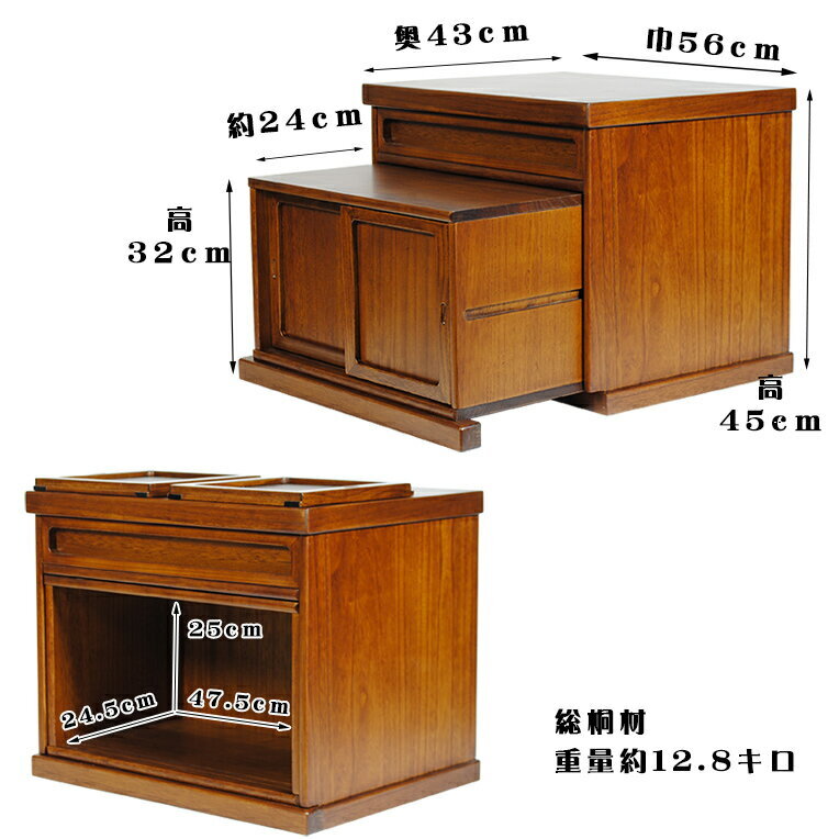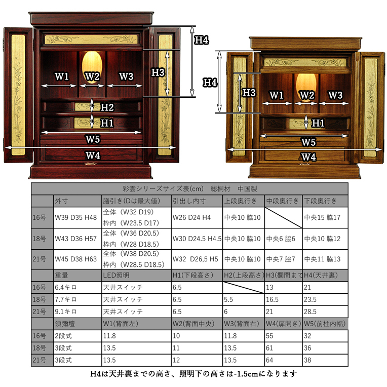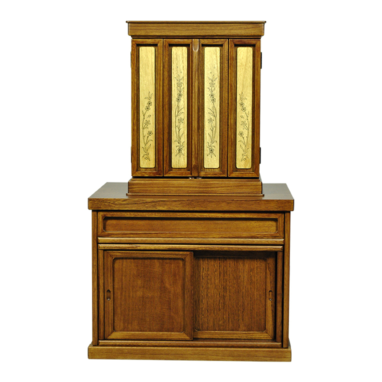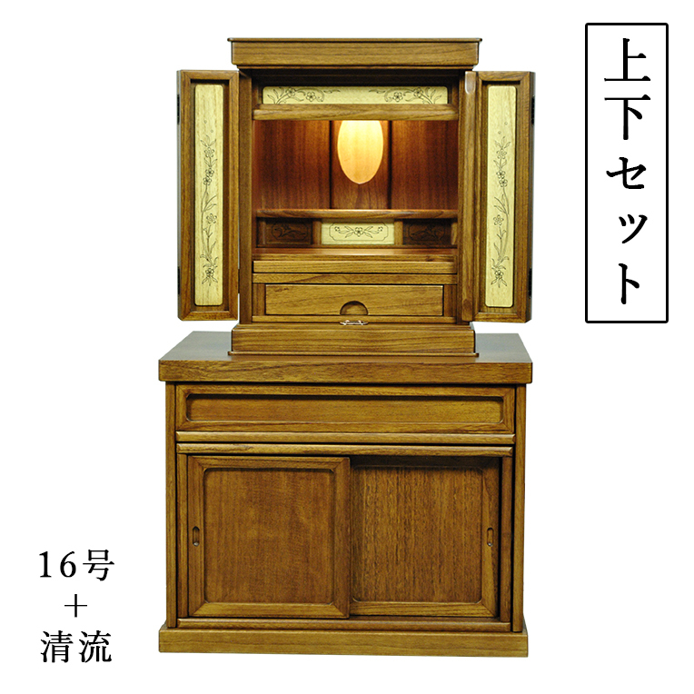 仏壇+仏壇台上下セット【彩雲16号+清流 ミドルブラウン色】LED照明付き・総桐材・軽い・伝統型仏壇・送料無料