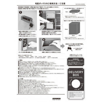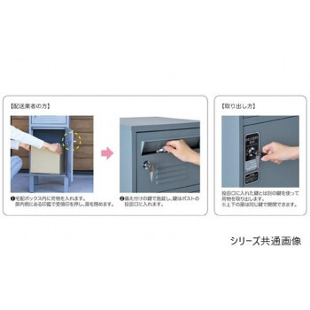 | 仕様 | ■組み立て式 ■高さ調節可能なアジャスター付き ■キーロック式(スペアキー2個付属) 【サイズ】 投函口:幅27.5×高さ4cm、ポスト取出口:幅29×高さ19.5cm、宅配ボックス取出口:幅29×高さ40cm |