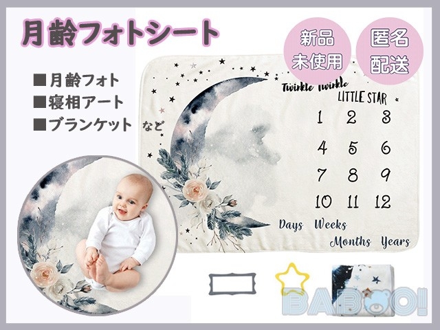 ニューボーン 月齢 記念 誕生日 フォトシーツ 赤ちゃん 撮影用背景 月 花 記念撮影 記念日 赤ちゃん 成長記録 写真映え ブランケット