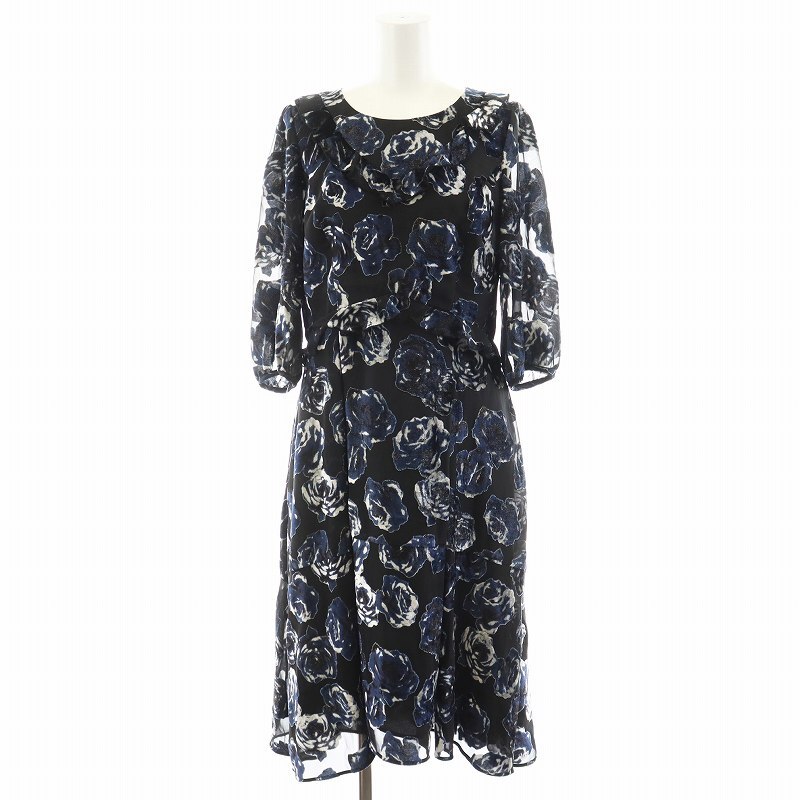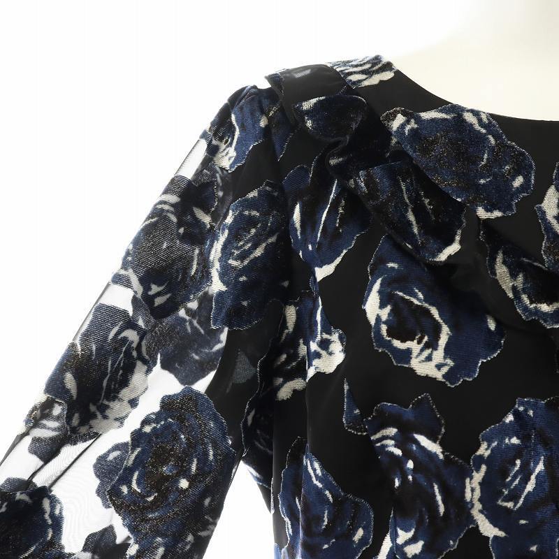 トゥービーシック TO BE CHIC ワンピース ミモレ ロング 7分袖 ベロア フラワー 花柄 40 紺 ネイビー W5J10-645-09 /AN39 レディース