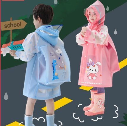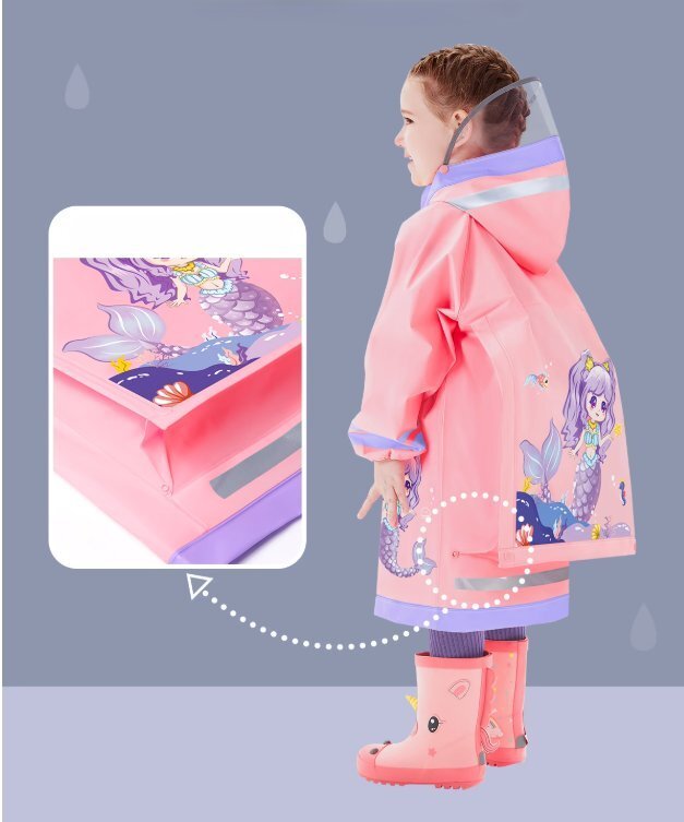 全身防水の新作男児・女児用子ども用レインコート、幼稚園・小学生向け、書包ポケット付き