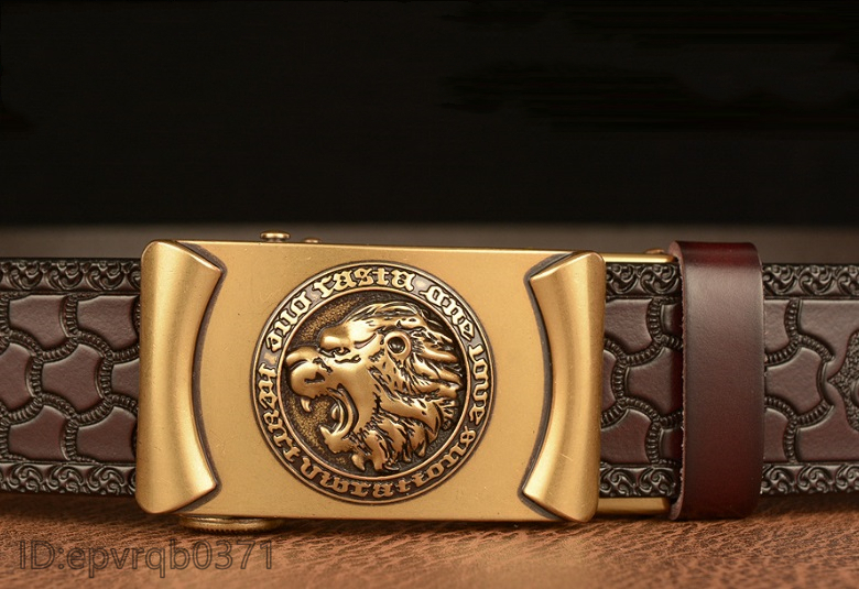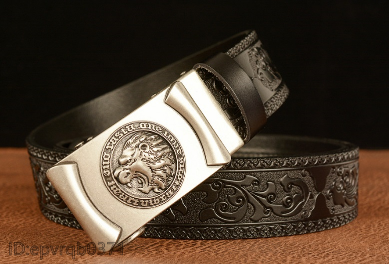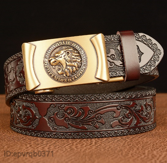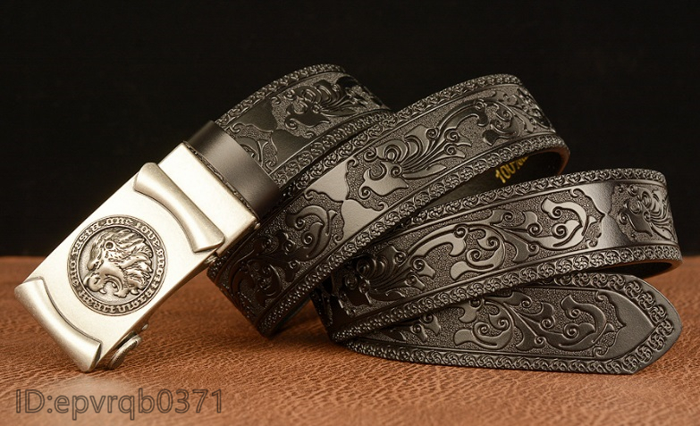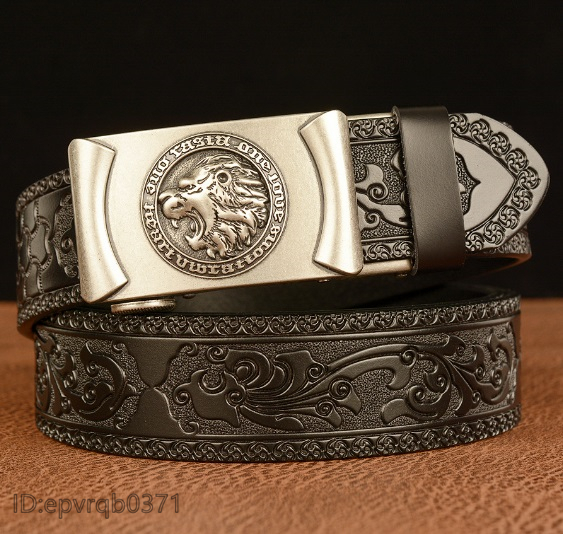レザーベルト 新品 オートロック式 バックル ライオン 本革 柄物 メンズベ ルト 幅3.5センチ 紳士 長さ調整可能 2色選ぶ/シルバー黒
