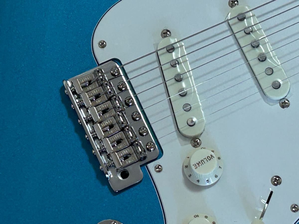 鮮やかなレイク・プラシッド・ブルー・フィニッシュのラージヘッド・ストラトは、あの御大が操るギターを彷彿とさせるスペシャルなモデルです。