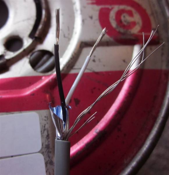 さらにその外側にアルミでホイルされた絶縁体で構成されております。被覆の無い撚り線とアルミ箔のホイルは