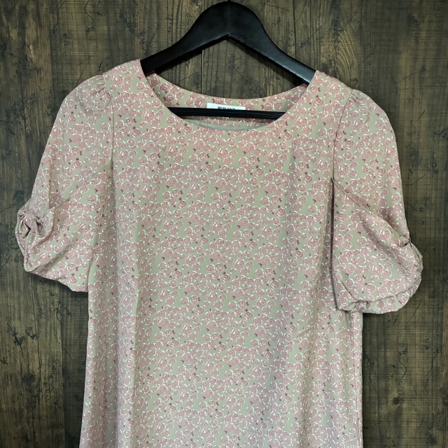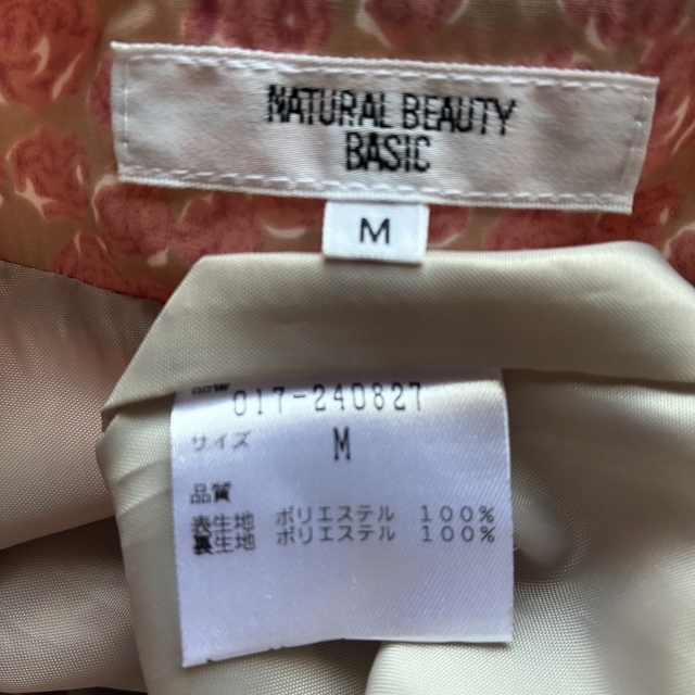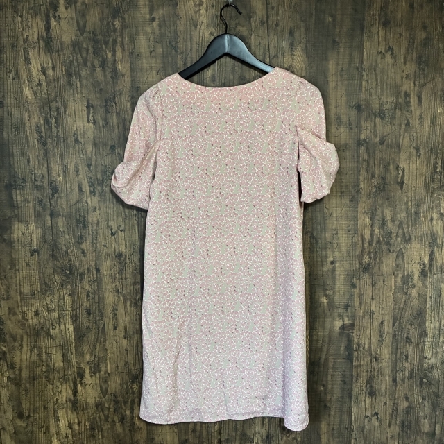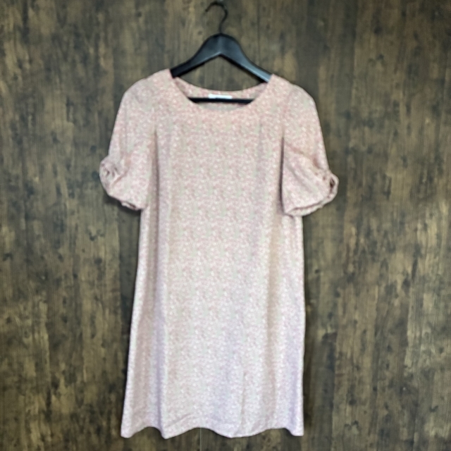 M29◇NATURAL BEAUTY BASIC | ナチュラルビューティーベーシック 半袖ワンピース ベージュ×ピンク レディース Mサイズ 中古品