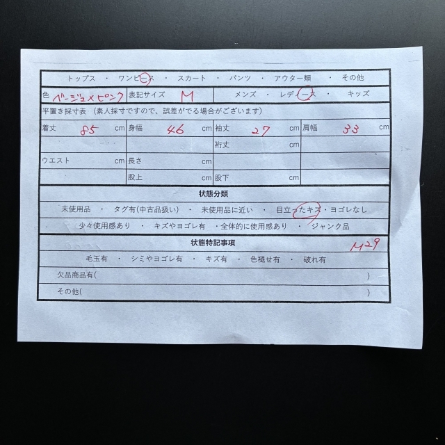 詳しい平置き採寸は、写真にて掲載しております。