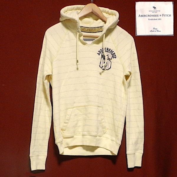 アバクロンビー&フィッチ 90's アメリカン クラシック Vネック ラグラン フード スエット スウェット パーカー 薄い 黄色 レディース L