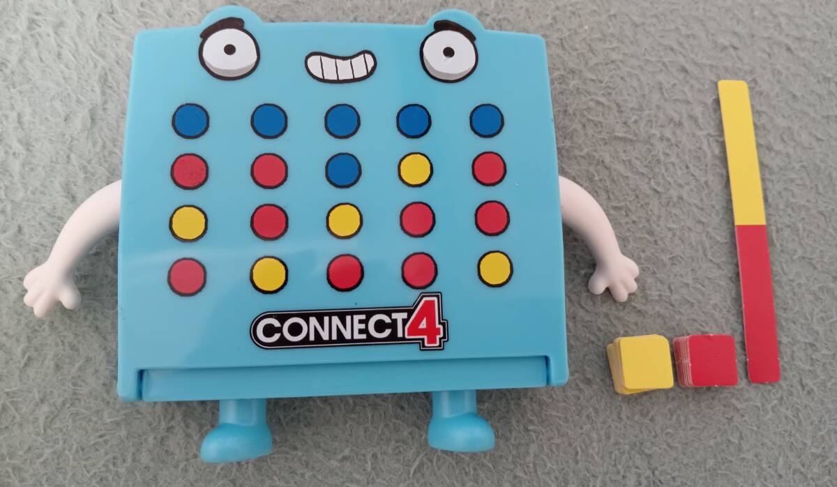 アメリカで人気のあるconnect4の携帯用ゲームになります。数回のみ使用しました。子どもたちが小さい頃に一緒に遊びましたので、黄色のチップが1枚足りません。説明書もありません。縦、横、斜めのどれかが4カ所揃えられた人が勝ちになります。すぐに決着がついたので、個人的には1枚チップがなくても大丈夫でしたが、ご理解頂ける方の入札をお待ちいたしております。裏側からチップを落とすのですが、落としたチップは、最後に付属の縦長の棒を使って頂いたら、取り出しやすくなります。チップは足側からもまとめて取り出せます。パーティーゲーム用にいかがでしょうか(^^)☆☆