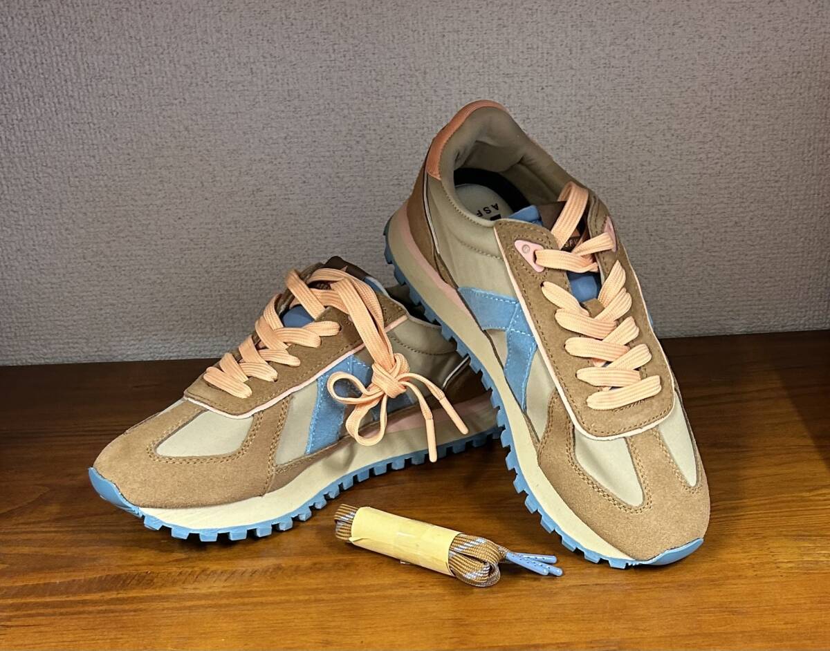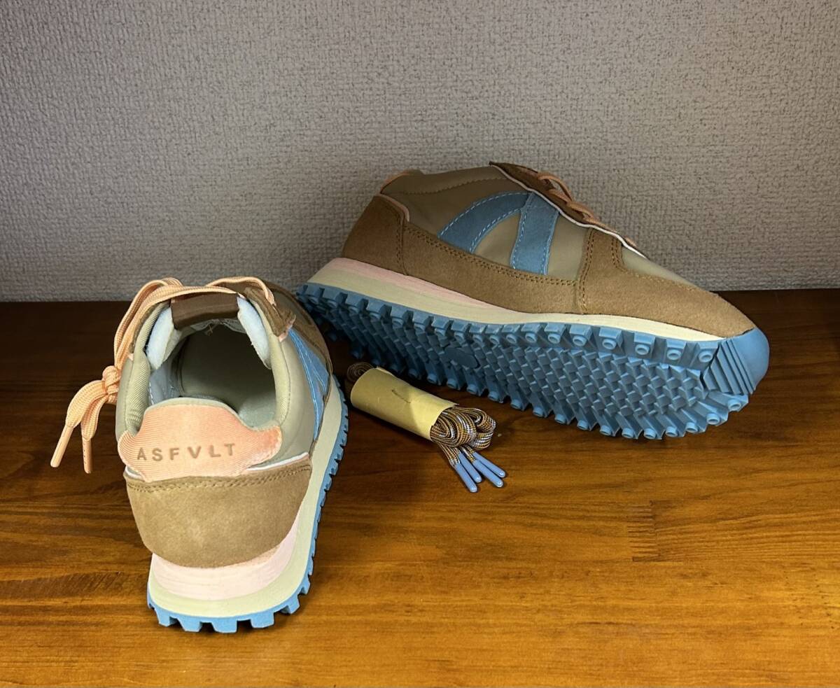 新品★フランスブランドの軽量スニーカー★茶・薄茶・ブルー★24.5㎝