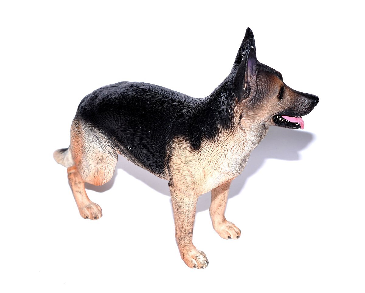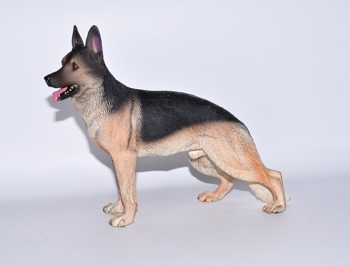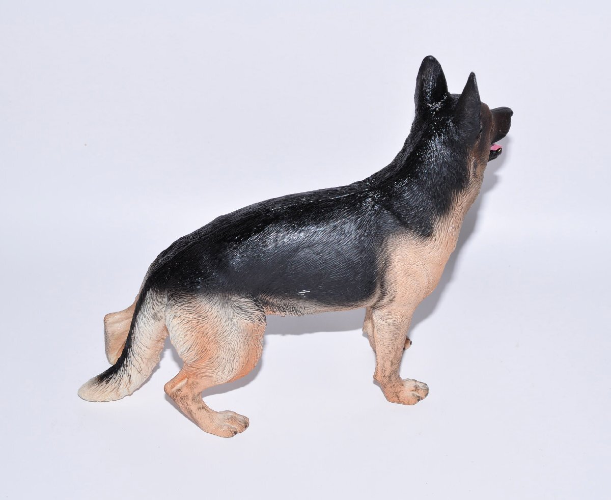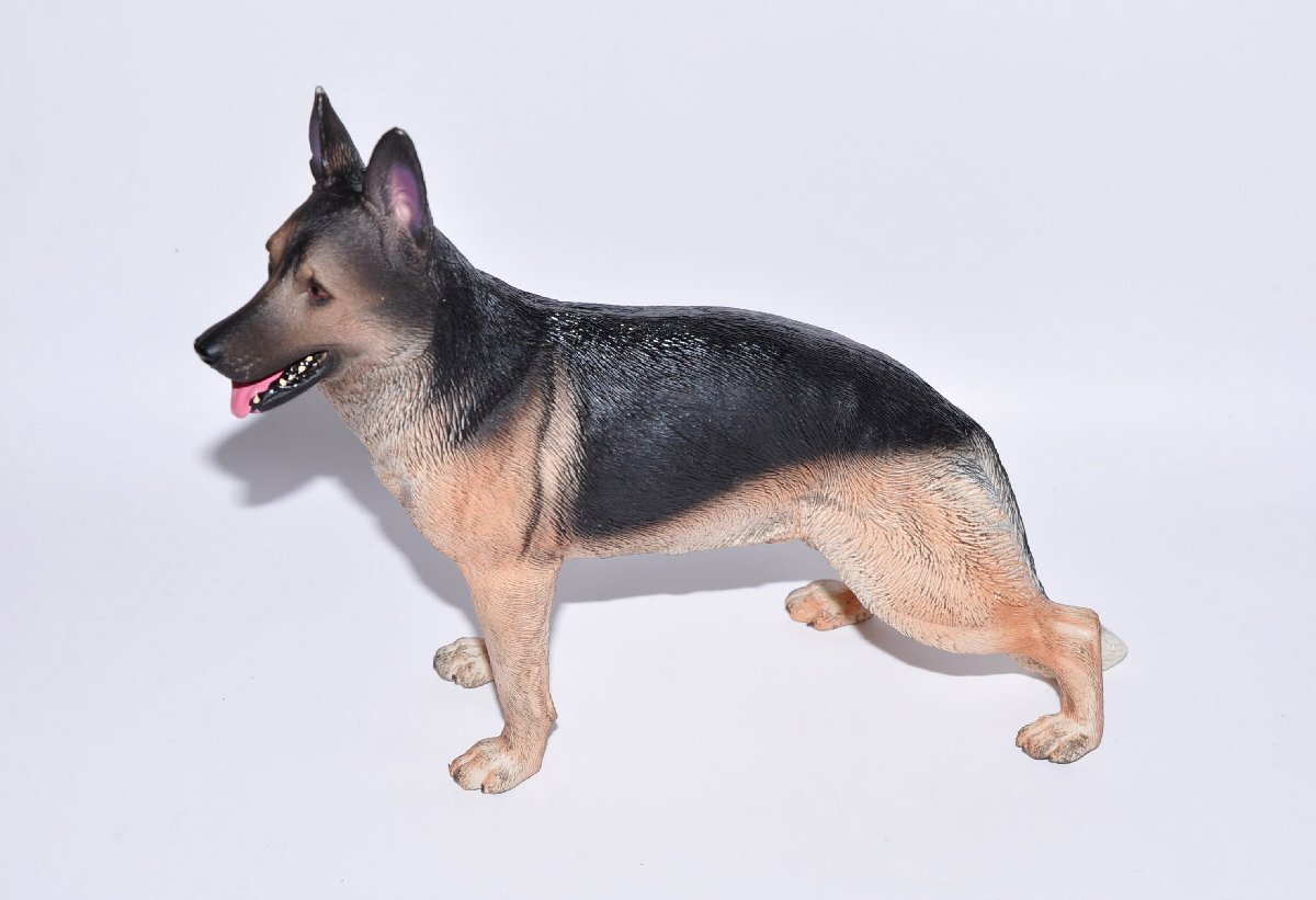 セール!即納!リアルなジャーマンシェパード犬ブラックアンドタン色彫像ミニチュア置物幅20cmホーム彫刻輸入品