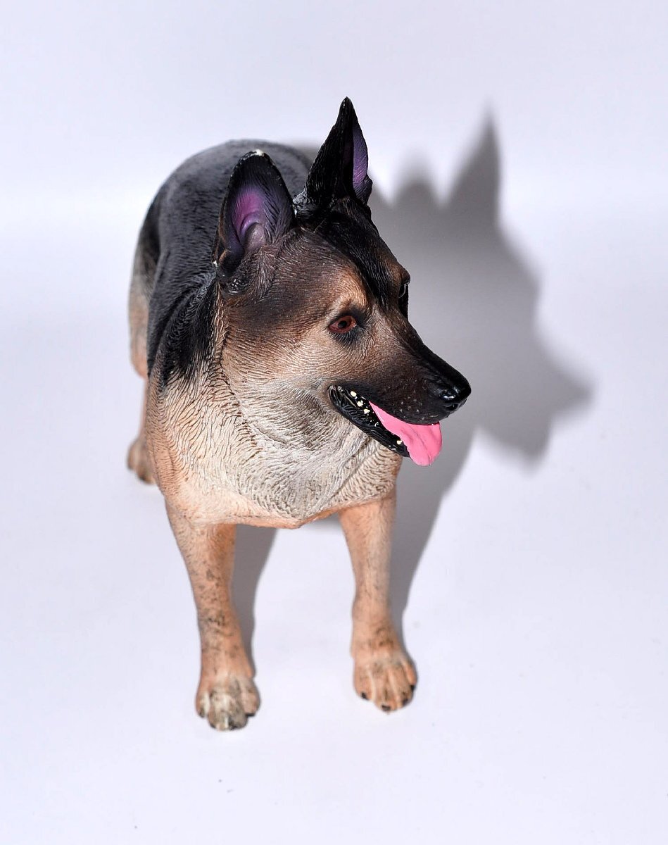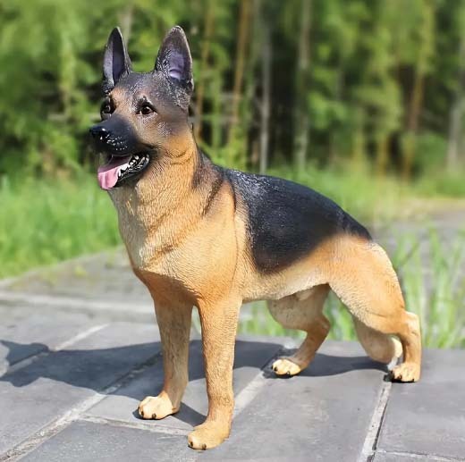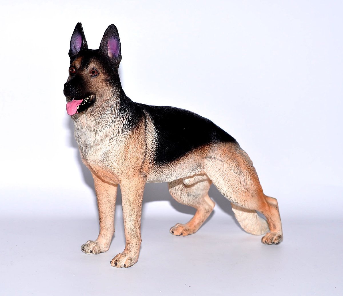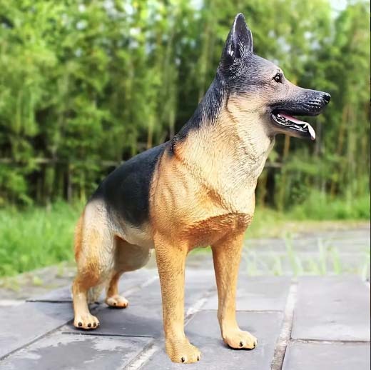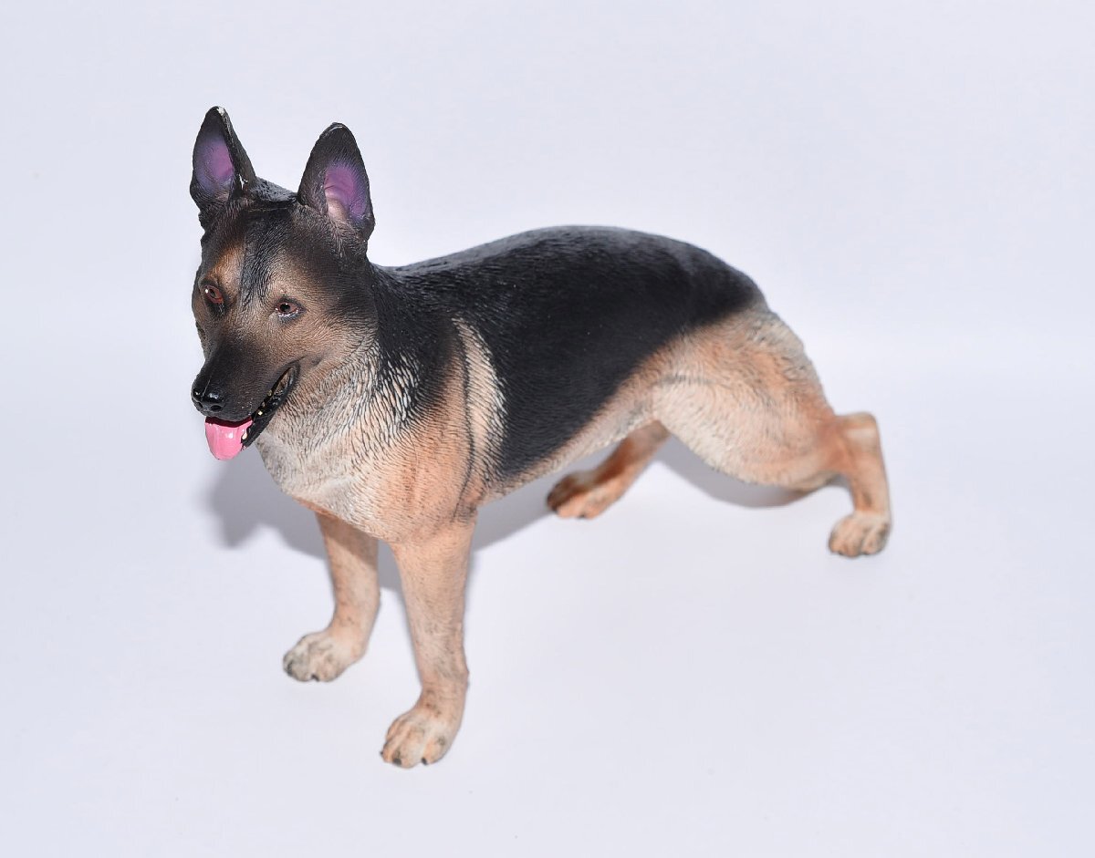 セール!即納!リアルなジャーマンシェパード犬ブラックアンドタン色彫像ミニチュア置物幅20cmホーム彫刻輸入品
