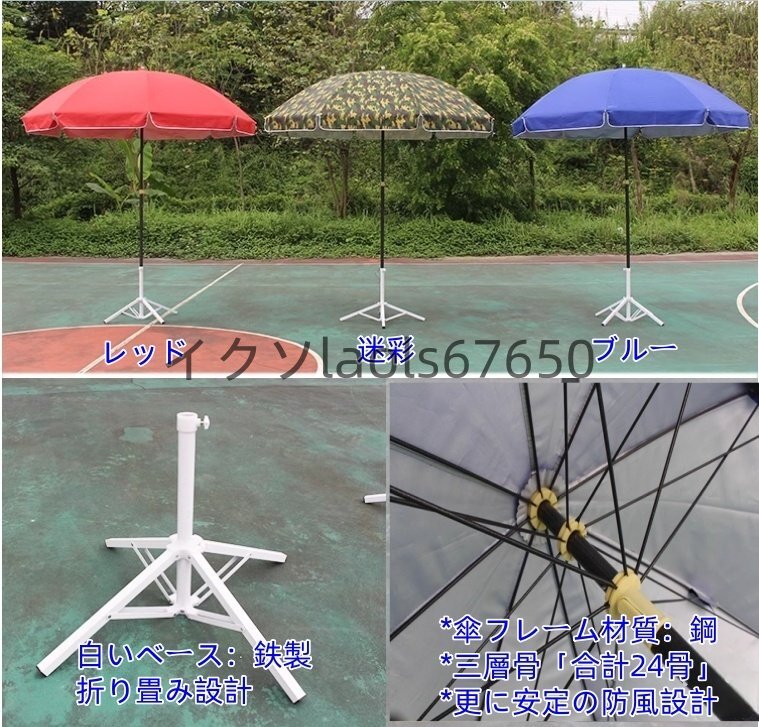 大型傘 円形 日よけ 屋外遮陽傘 折り畳み 晴雨兼用傘 三層骨 24骨 防風設計 ビーチ傘 紫外線遮蔽 多用途 収納簡単 携帯便利 展開直径2.2M