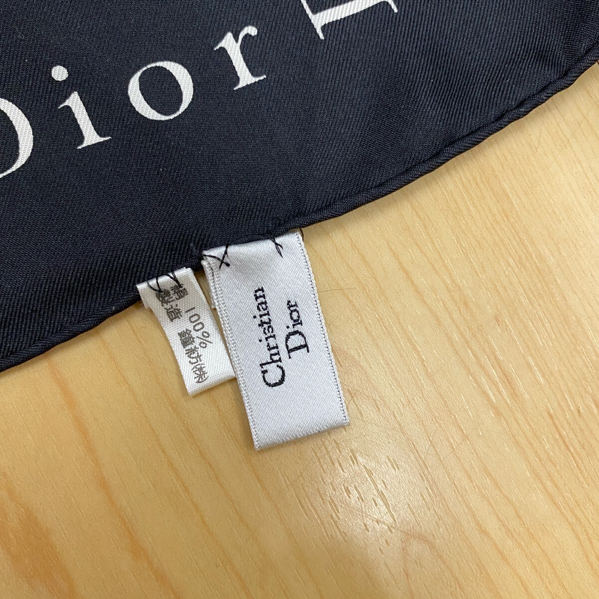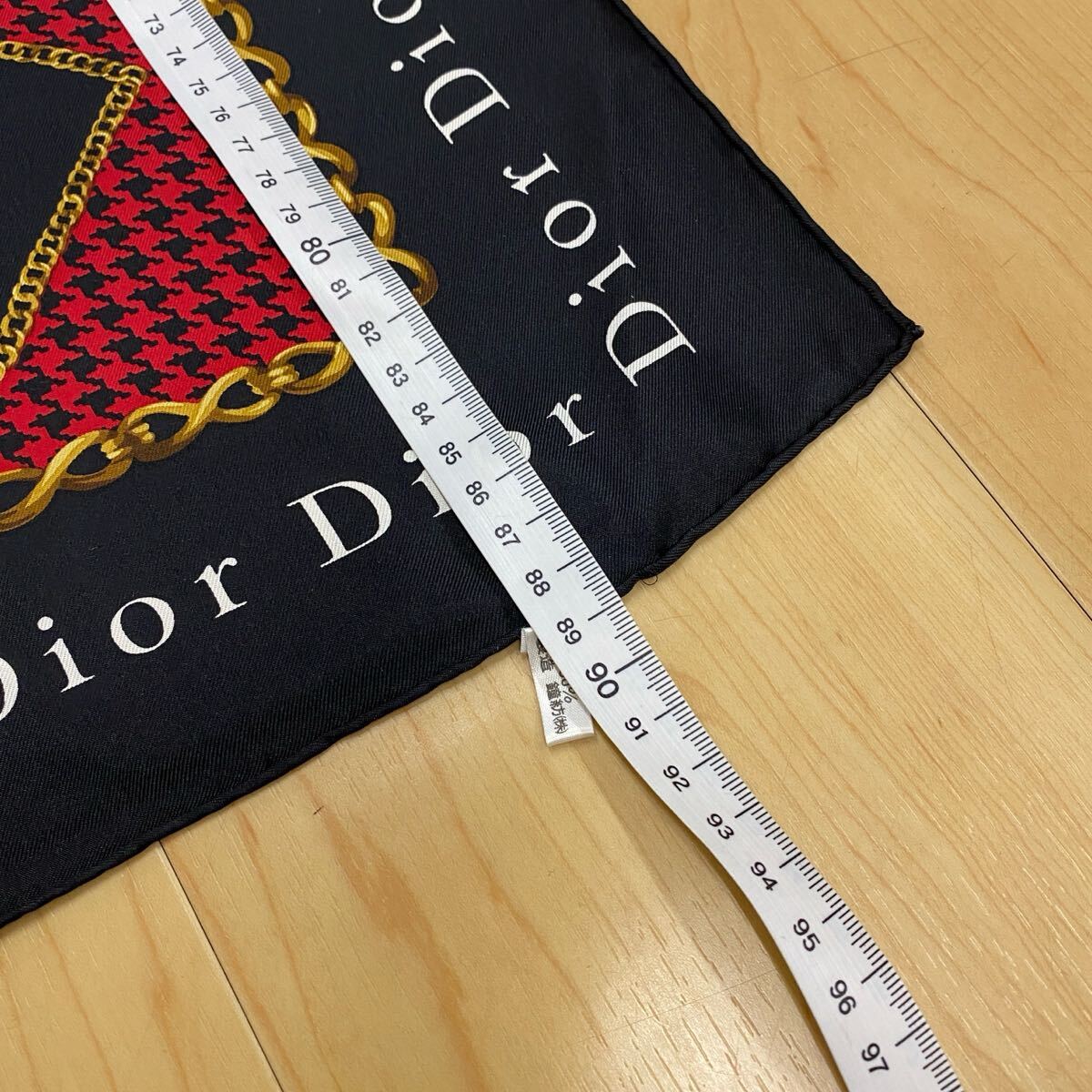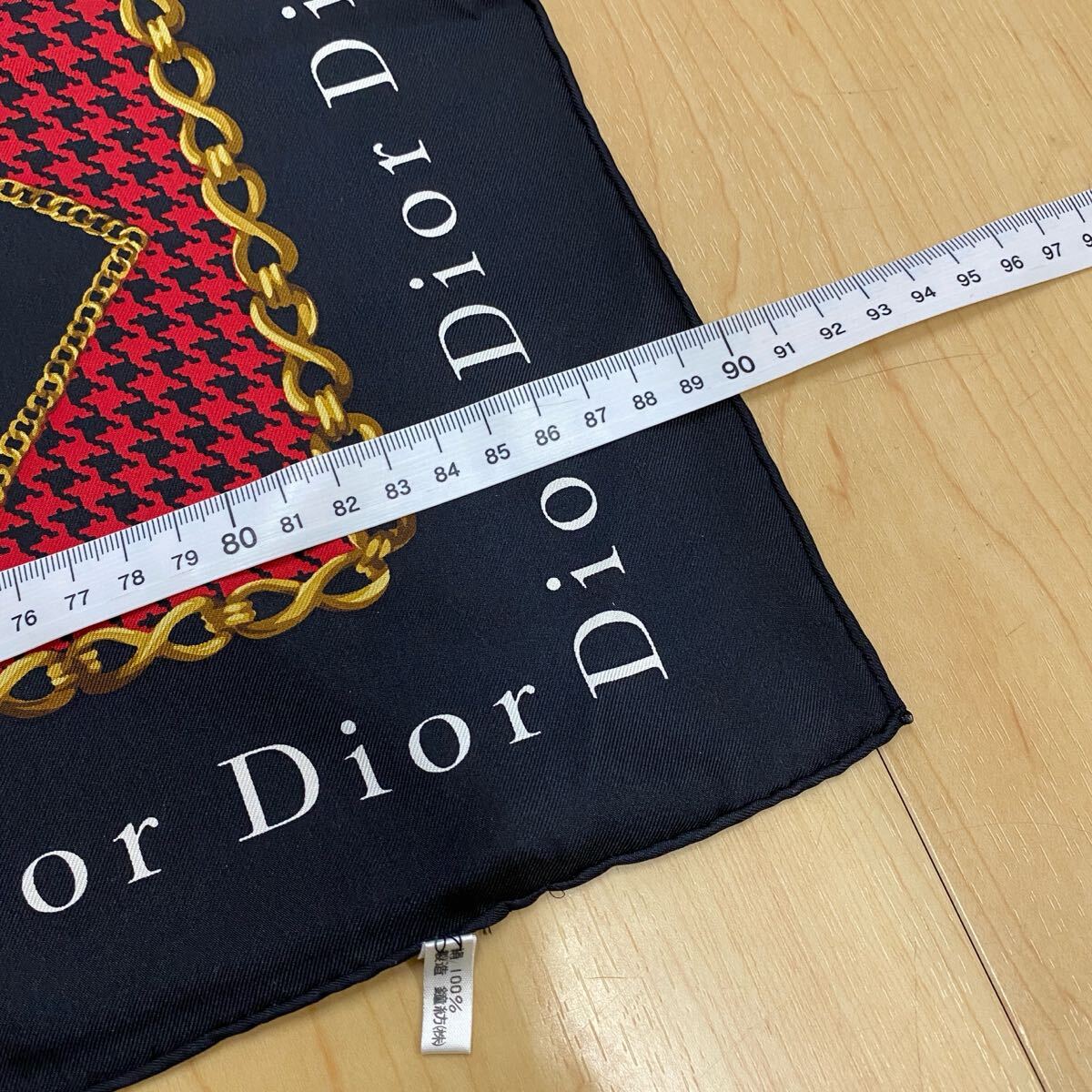 Christian Dior クリスチャンディオール スカーフ レッド ブラック 千鳥格子 ふちロゴ・ブラック  no.41