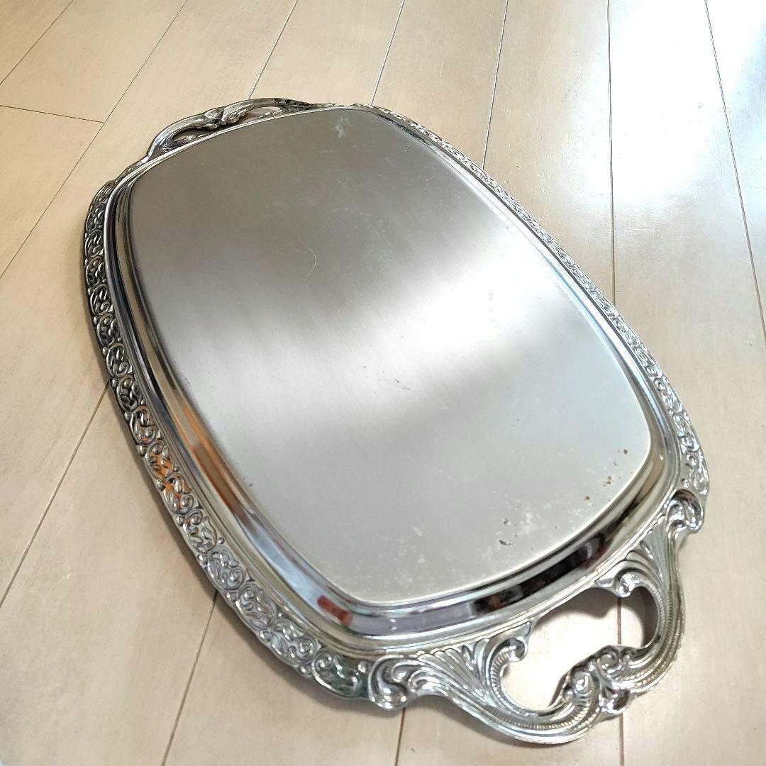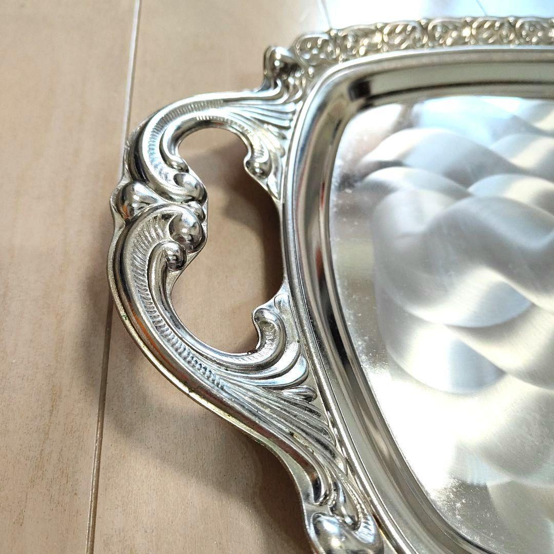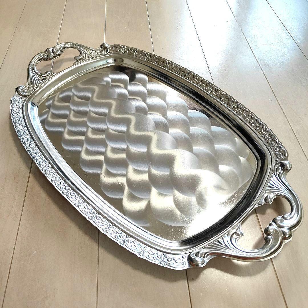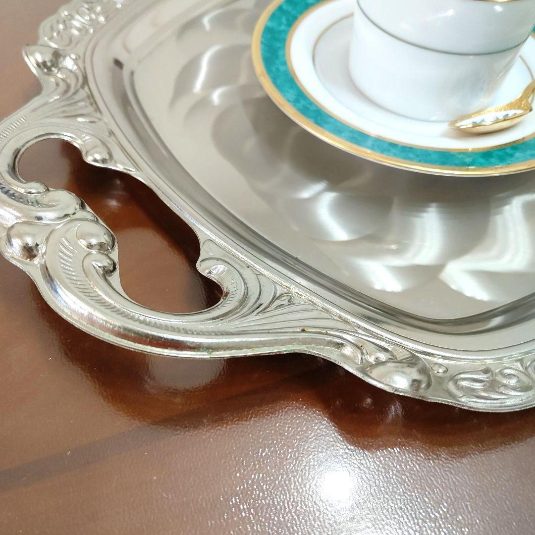 金属製 お盆 洋風トレイ 銀色のトレー 大きめ ケーキやティーなどに