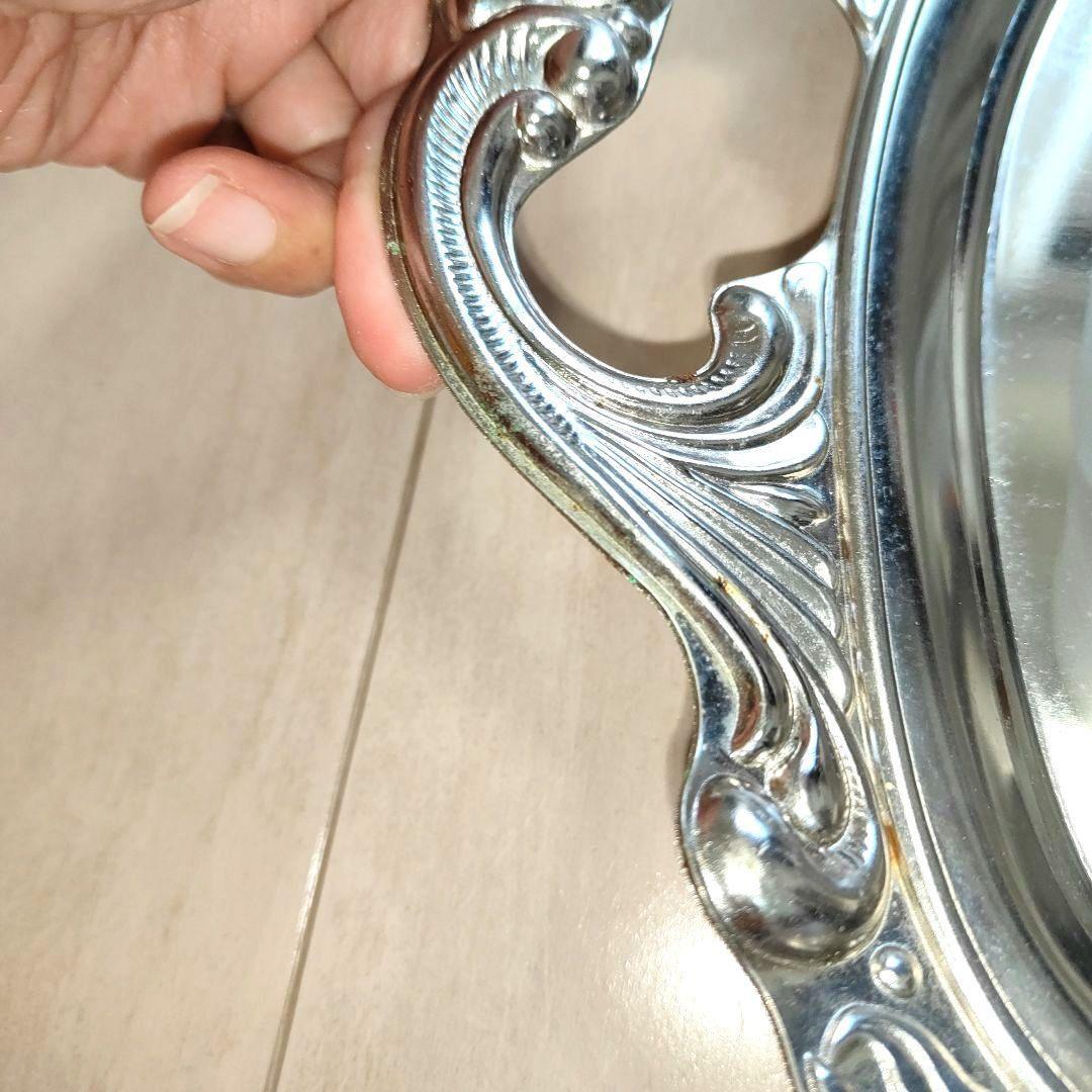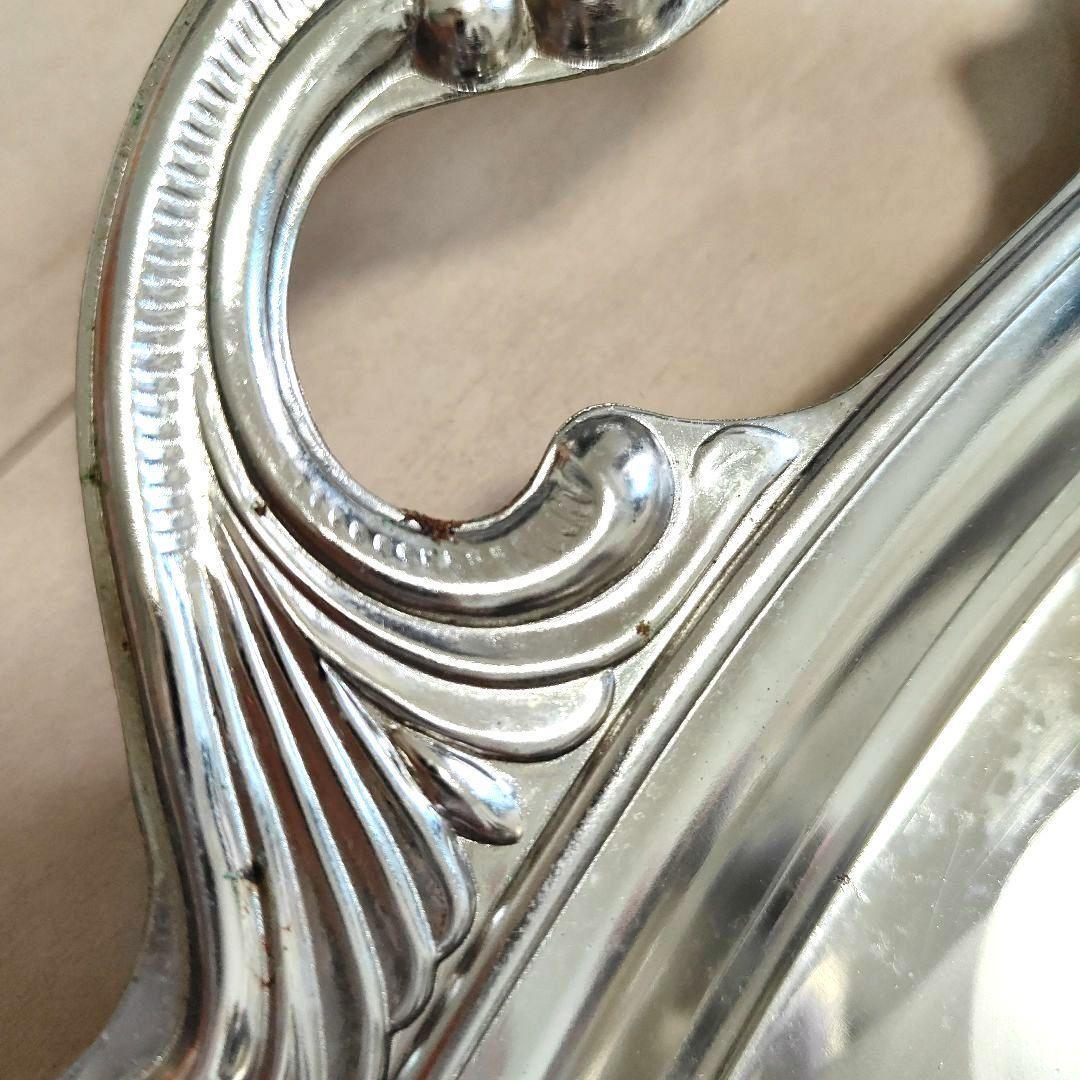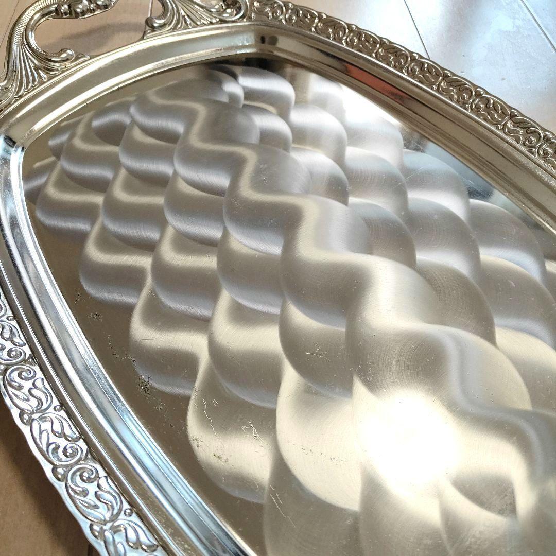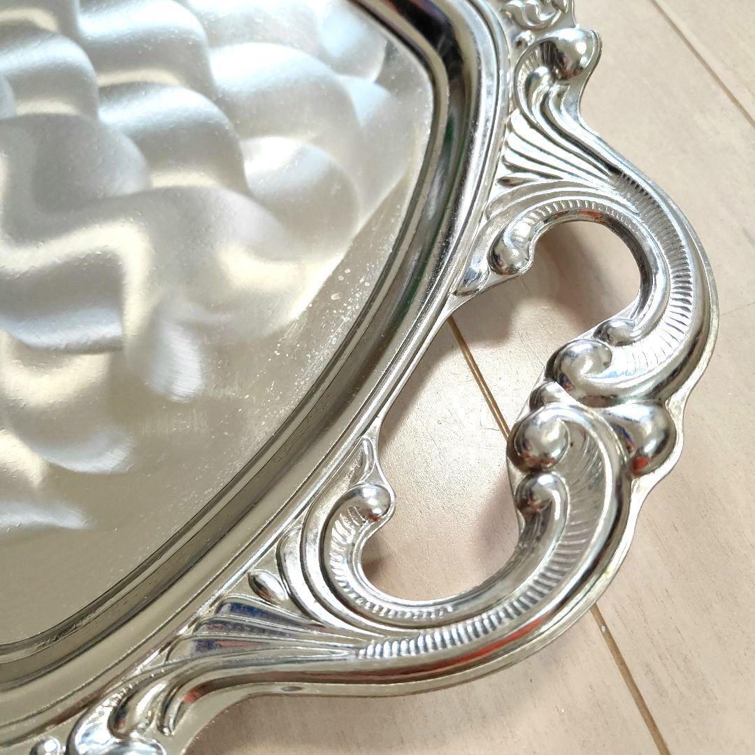 金属製 お盆 洋風トレイ 銀色のトレー 大きめ ケーキやティーなどに