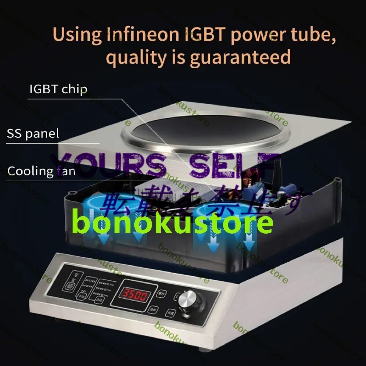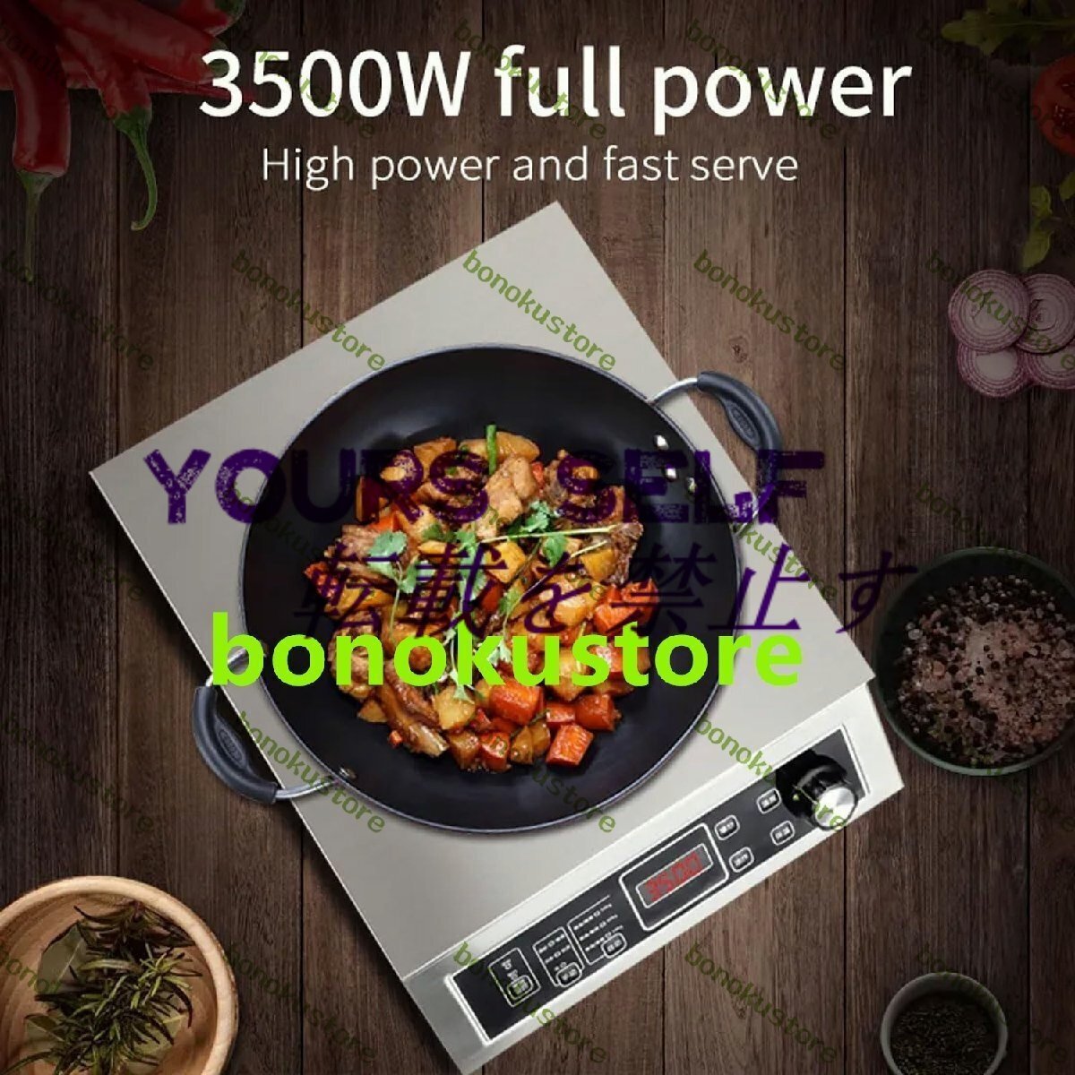 商品説明 材質:高強度ステンレス鋼、傷に強いブラッククリスタルパネル、耐熱性と耐亀裂性で作られています。防水、耐油、防滴設計なので、掃除やメンテナンスが簡単です。 特徴: 効率的で省エネ、操作が簡単で、強力な 3500 W の出力を備え、すぐに加熱できるため、現代の