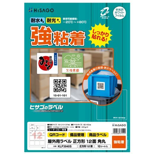 ○水・光・温度変化に強く破れにくい、屋外での使用に適したラベルです。