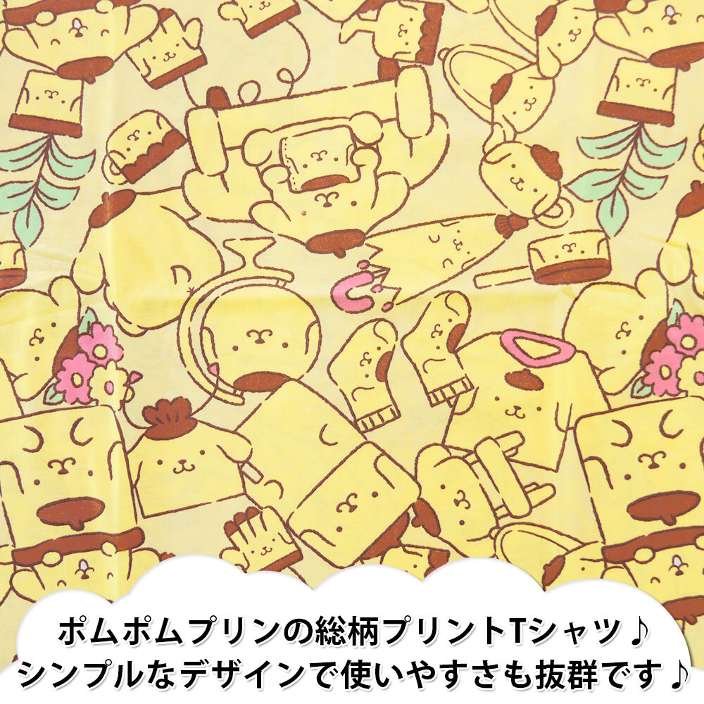 正規店仕入れの新品未使用品です 綿とポリエステル素材で、吸汗速乾に優れます ポムポムプリンの総柄プリントTシャツ シンプルなデザインで使いやすさも抜群です |