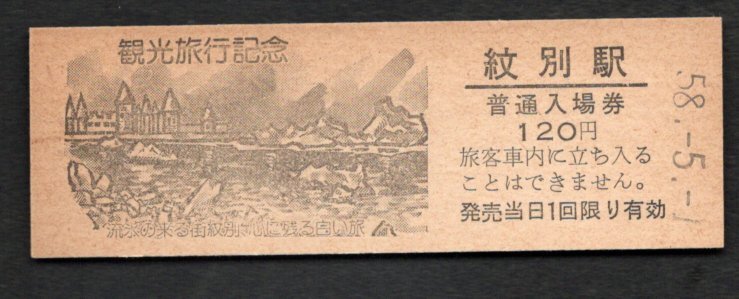 観光旅行(紋別駅 120円)流氷の来る街紋別 心に残る白い旅