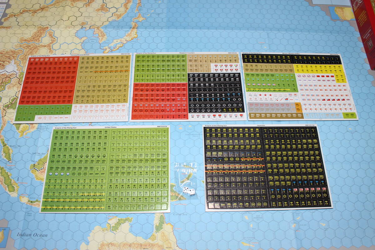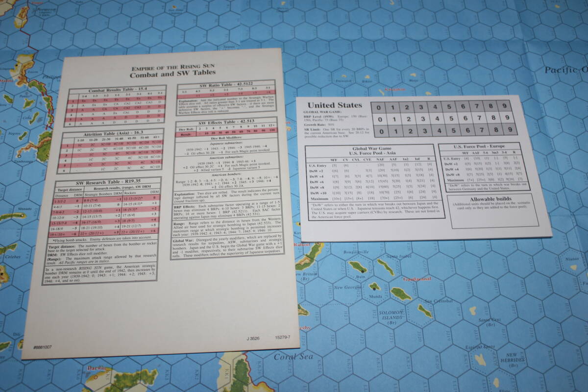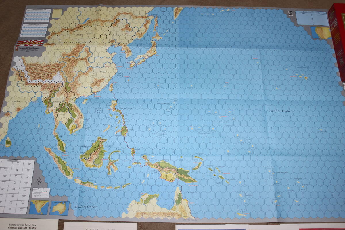 マップ=2枚、ヘックス対辺距離=100miles1ターン=3months、カウンター数=1300個、師団規模(主要艦艇は1隻単位)です。