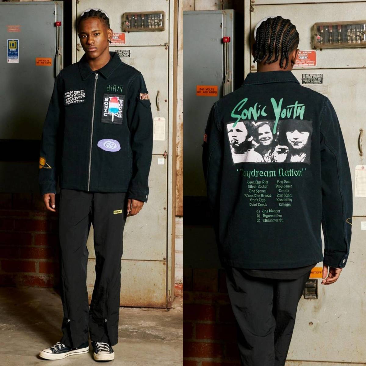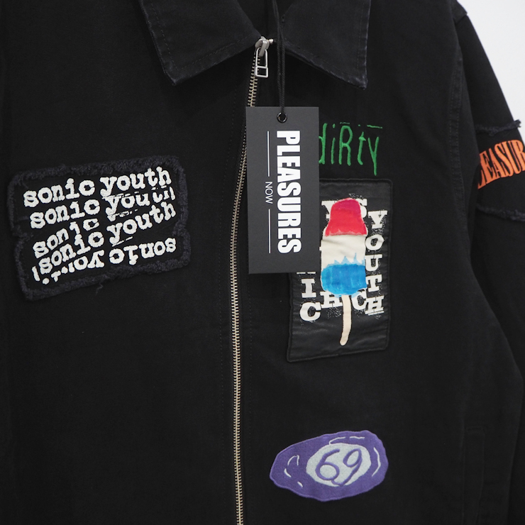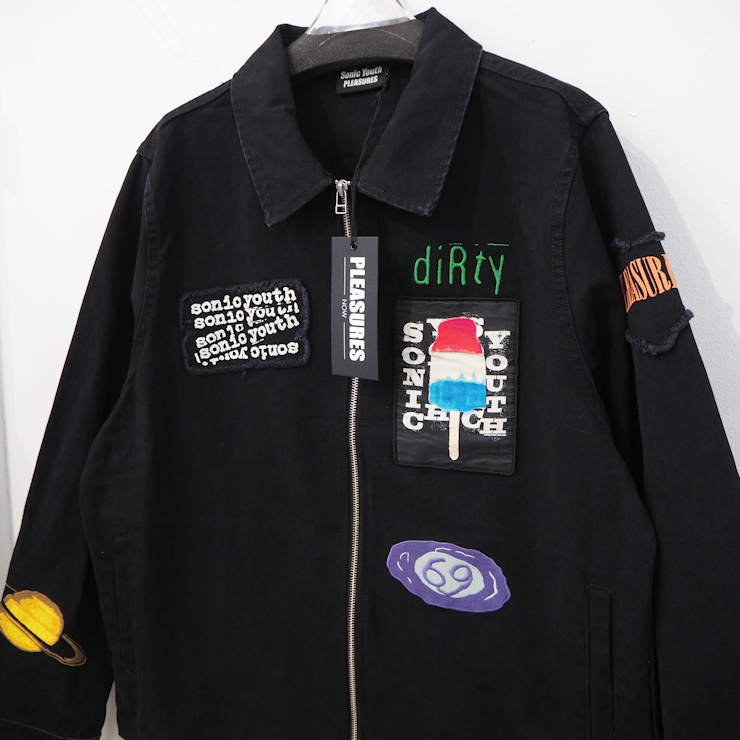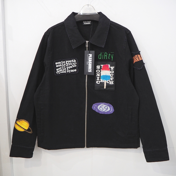 新品 定価35200円 プレジャーズ × ソニックユース ワーク ジャケット 黒 ブラック メンズ L XL PLEASURES SONIC YOUTH ブルゾン ジップ 春