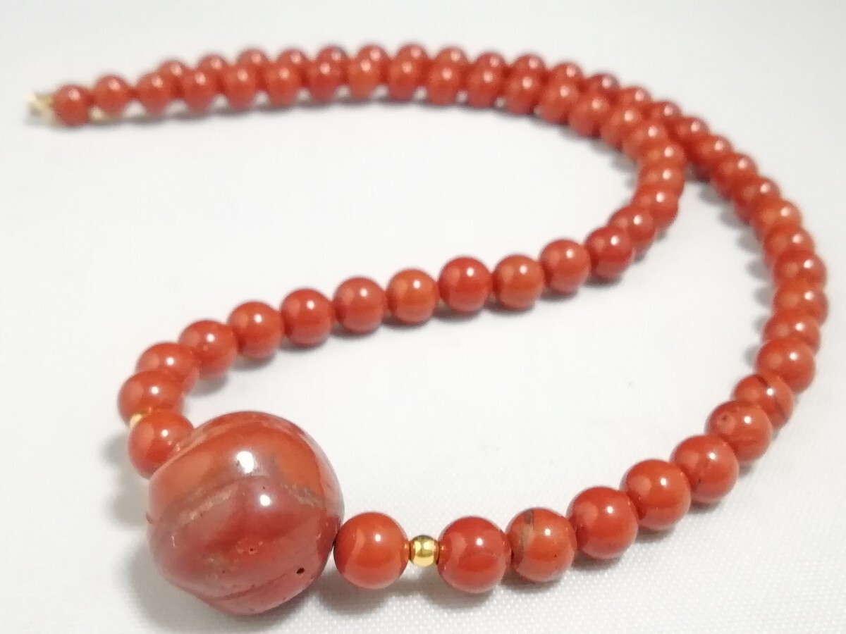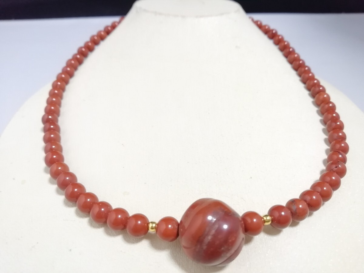 天然ファンシージャスパー大玉ワンポイントペンダントネックレス