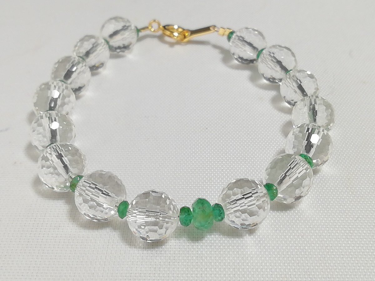 コロンビア原産天然エメラルド利用マダガスカル水晶ブレスレット