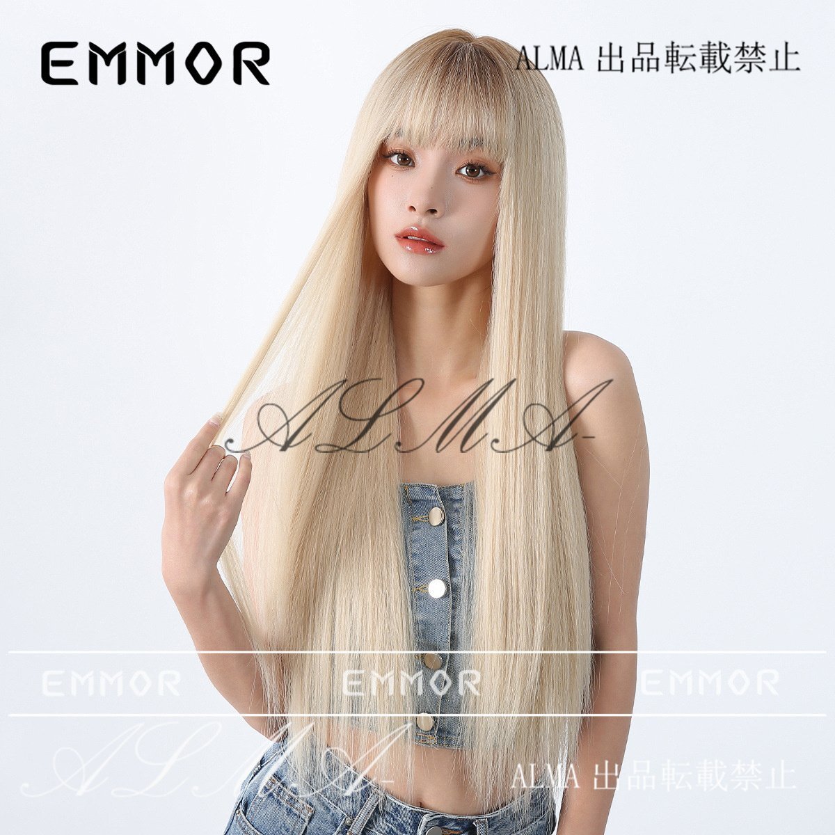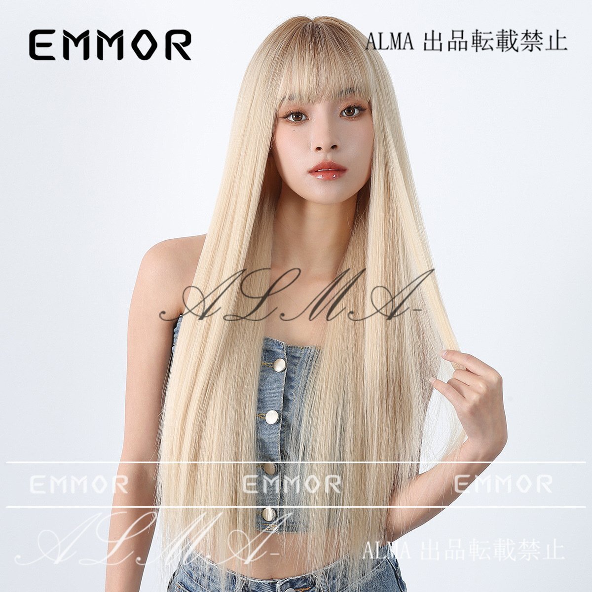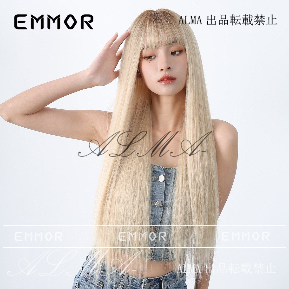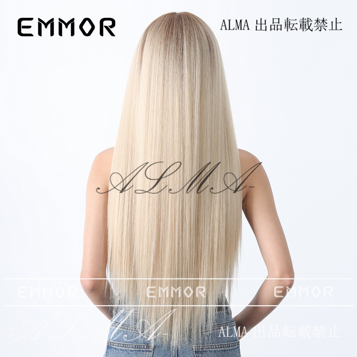 新品人毛 ホワイトゴールド ロングヘア 漫画風 ストレートヘア ピュアビジュアル つむじ部分手植え 自然に見えますフルウィッグ