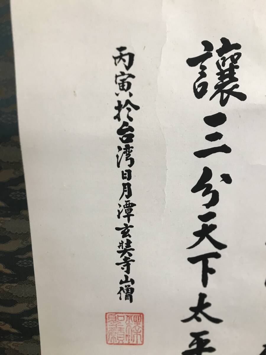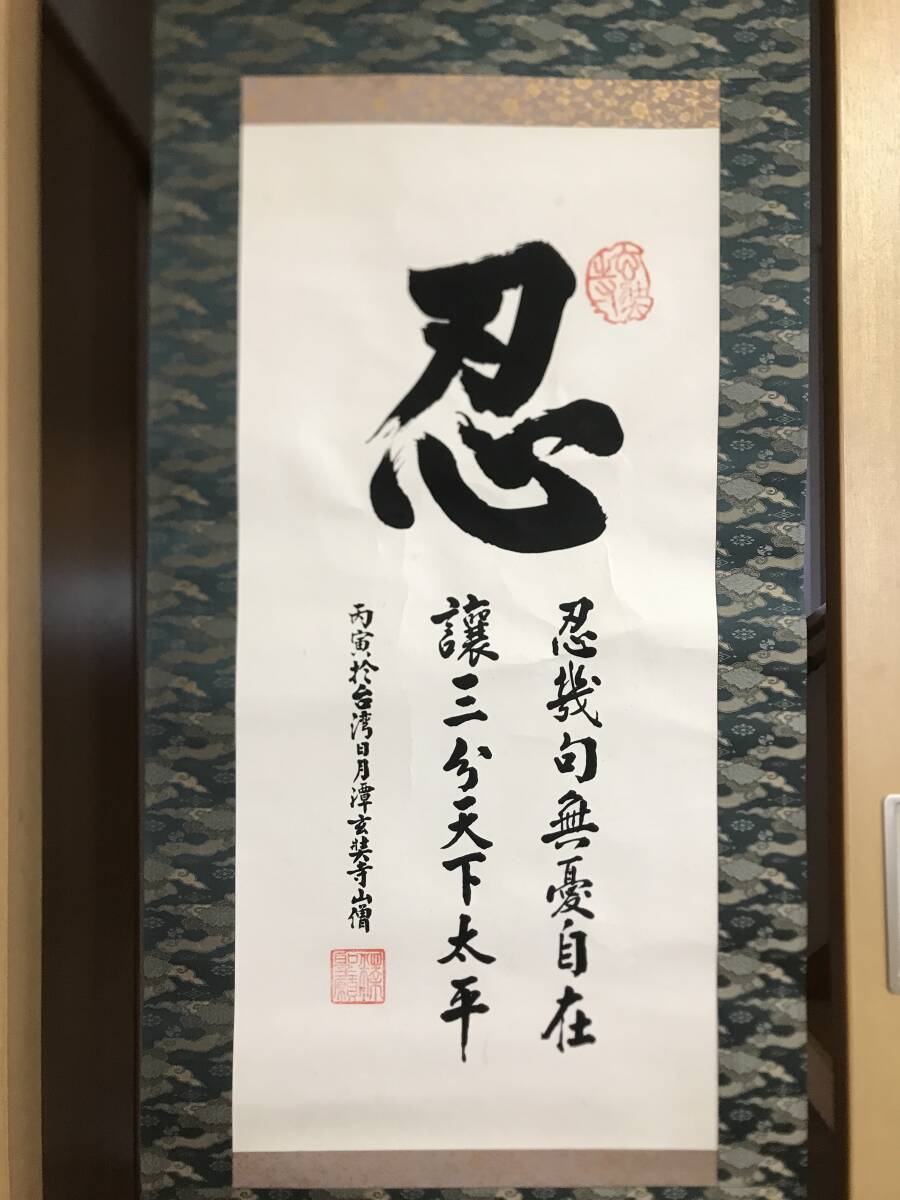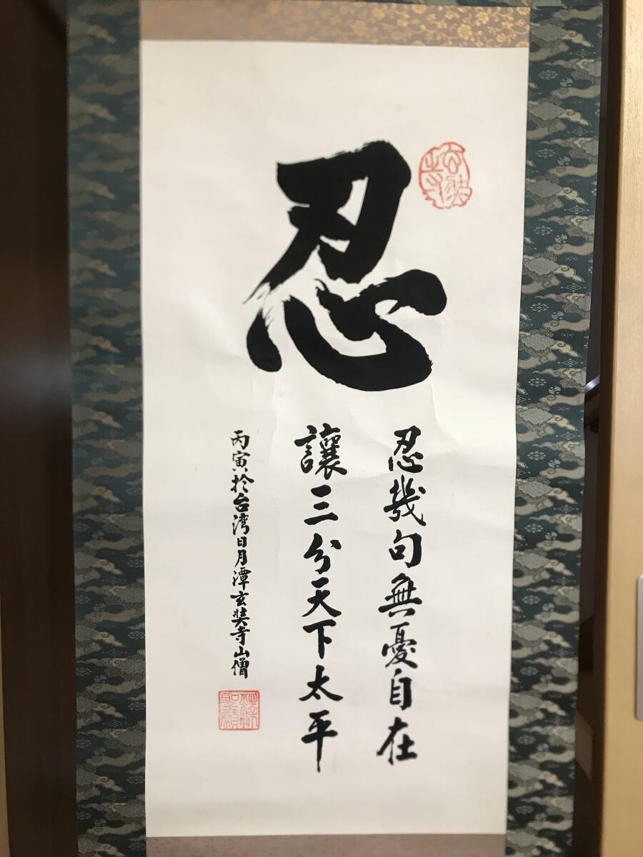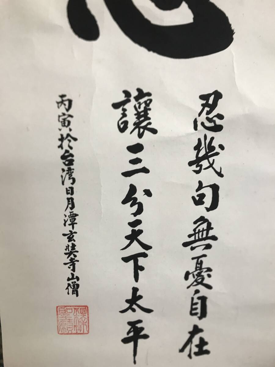 台湾日月潭玄奘寺  忍  掛軸   紙本 真筆 日月潭