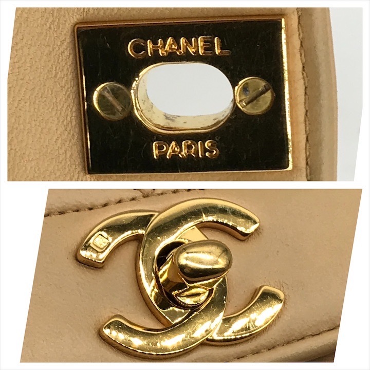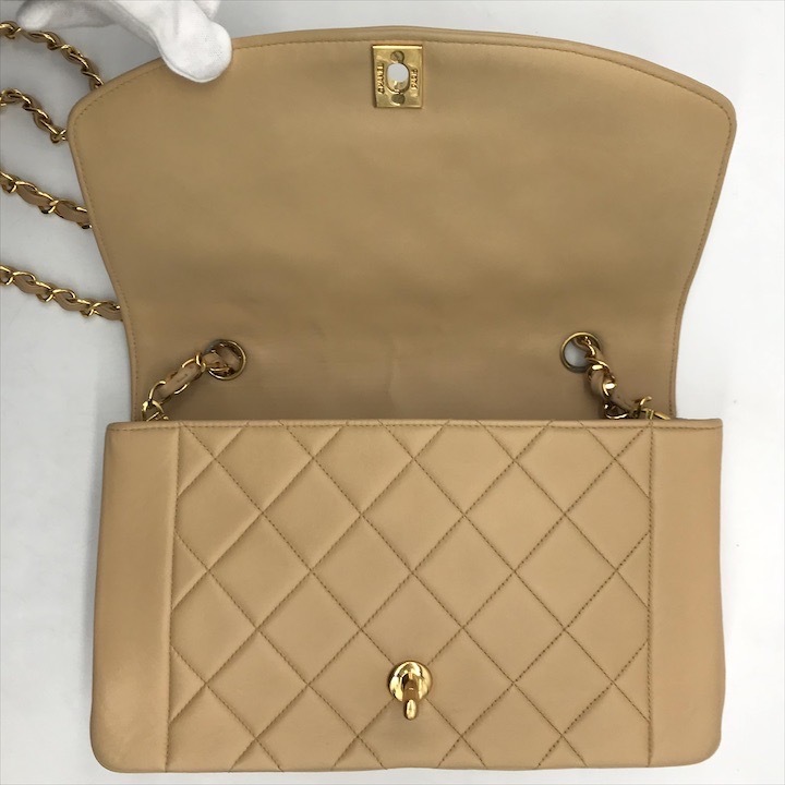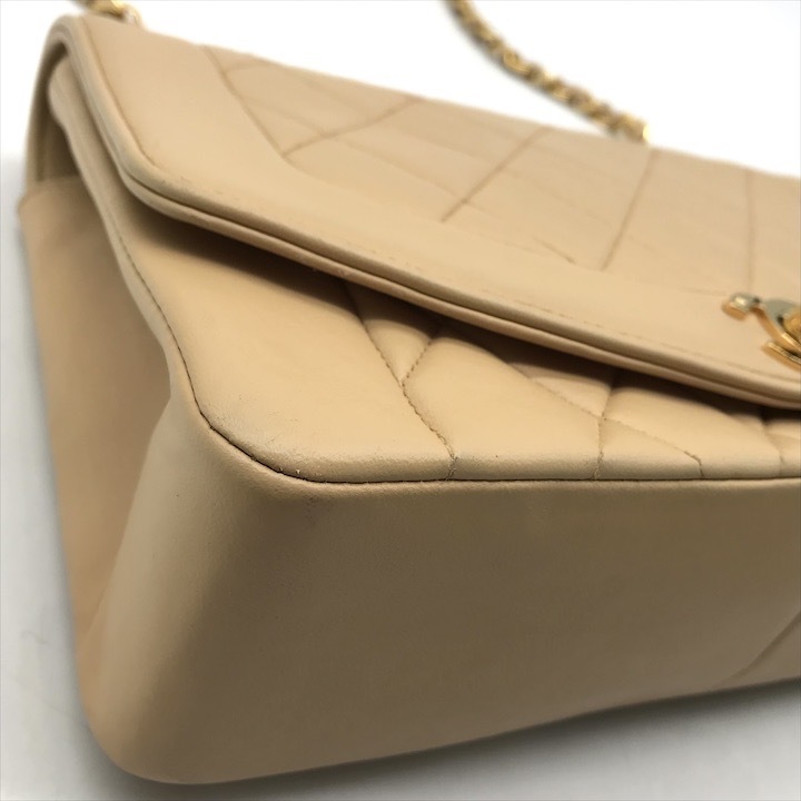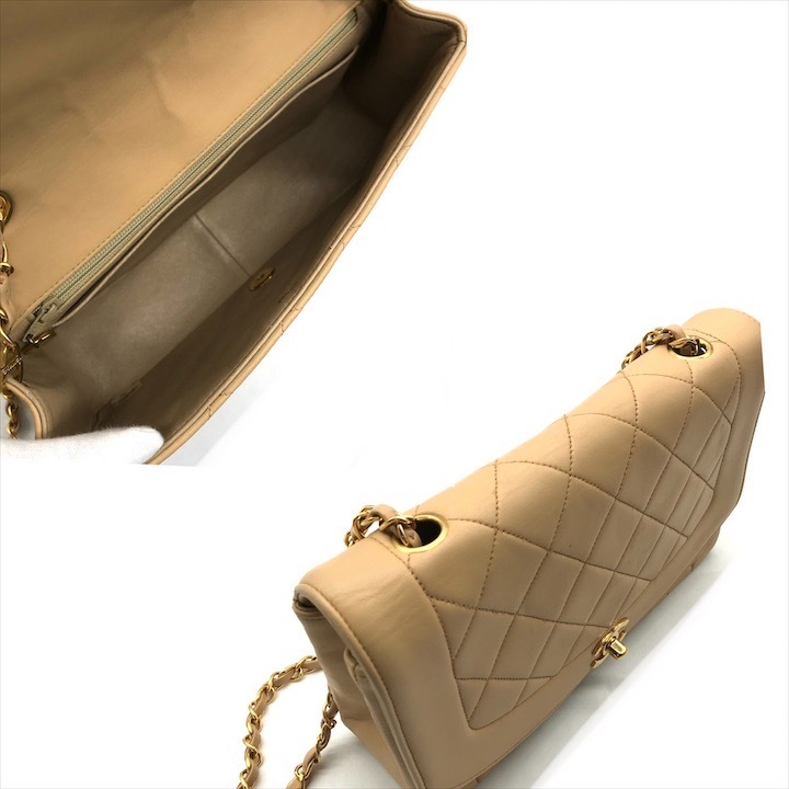 良品 CHANEL シャネル ダイアナ ココマーク マトラッセ ラムスキン ターンロック チェーン ショルダー バッグ ベージュ レディース da1 | |||