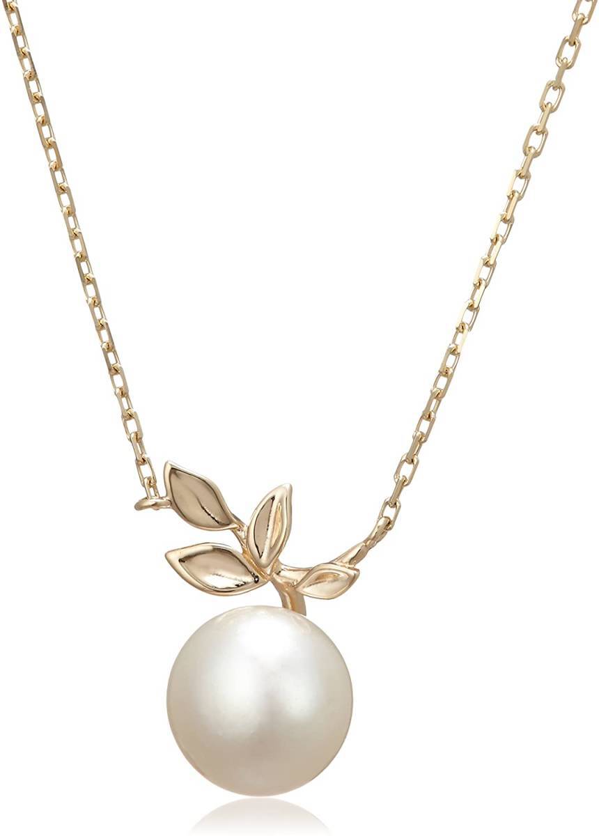 アガット ボタンパールK10ゴールドネックレス 真珠 一粒パール リーフ葉
