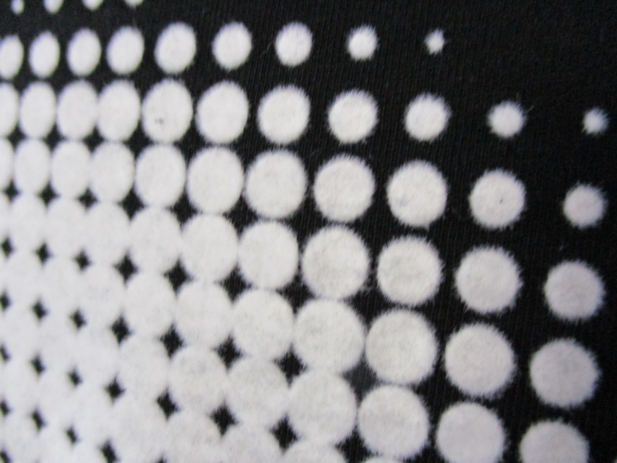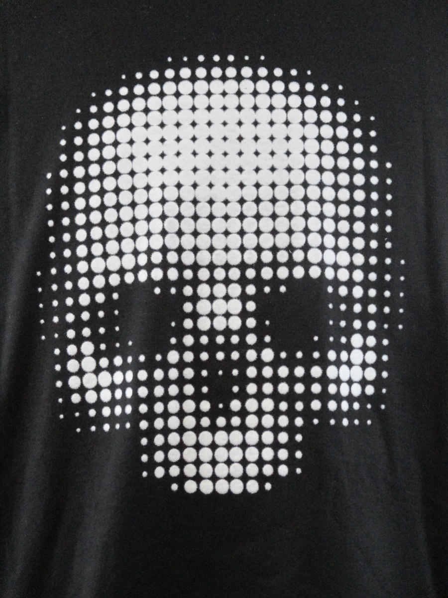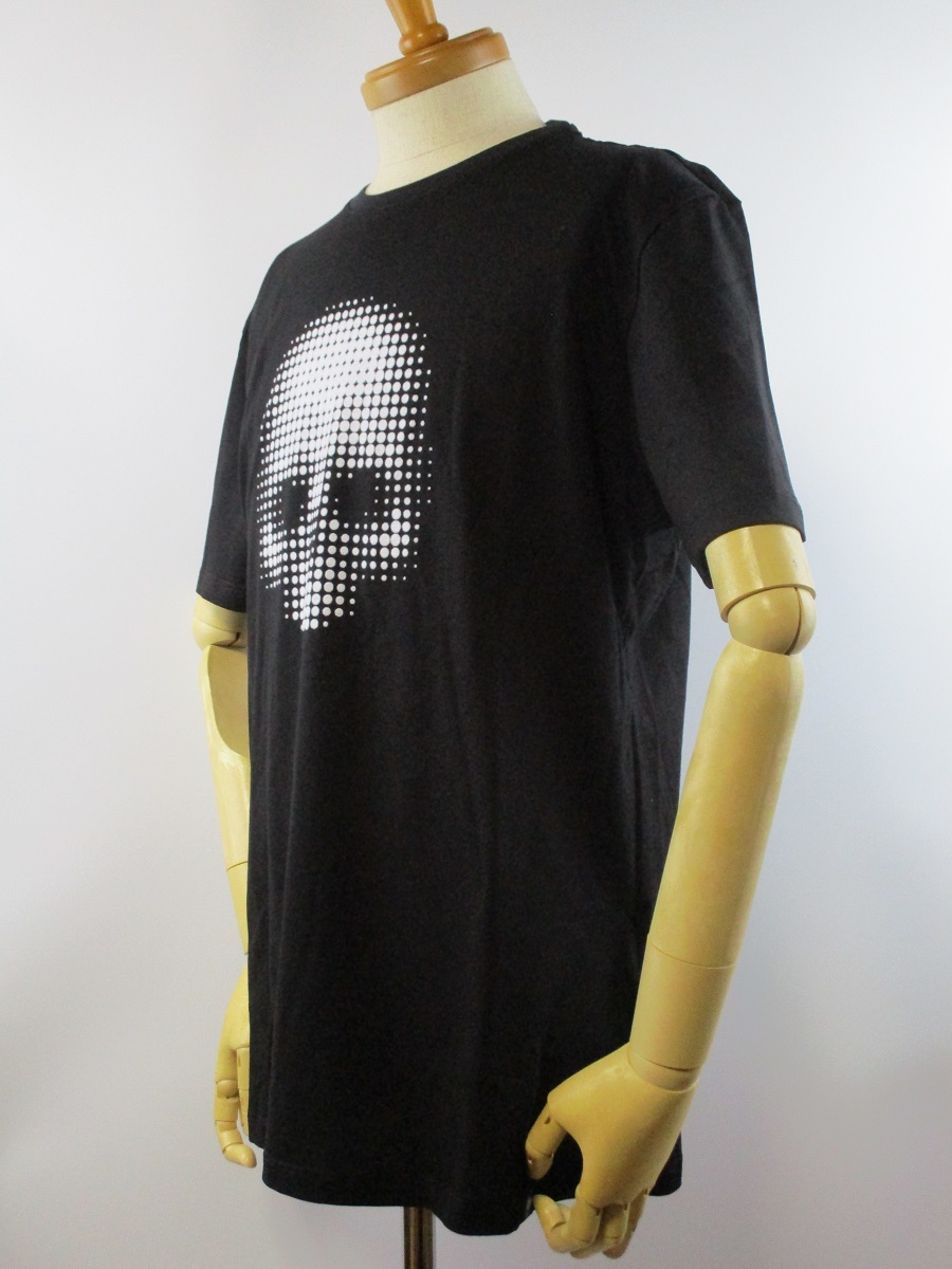 細やかなドットで表現された点描柄のスカルを中央に施したTシャツです。
