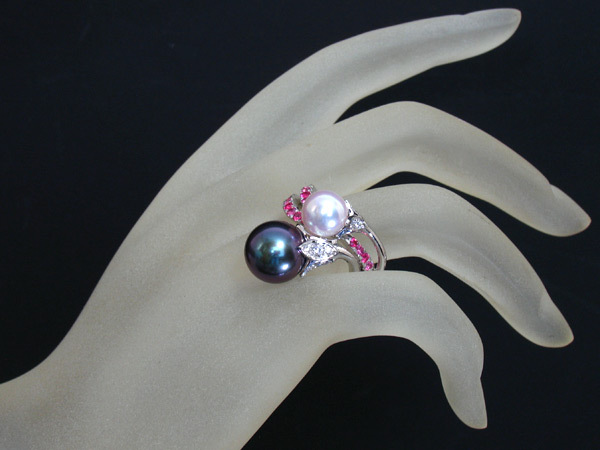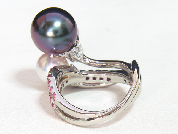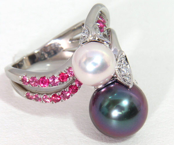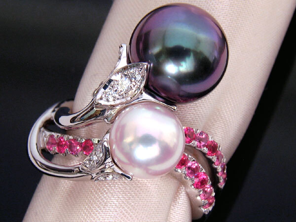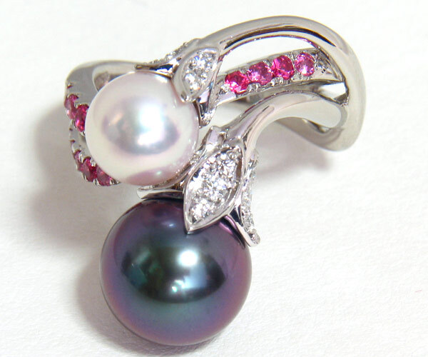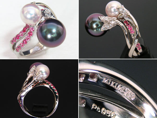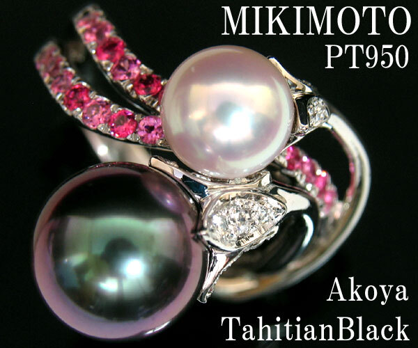 ミキモトのハイジュエリー、PT950 黒真珠 あこや真珠 スピネル ダイヤモンド リングです。