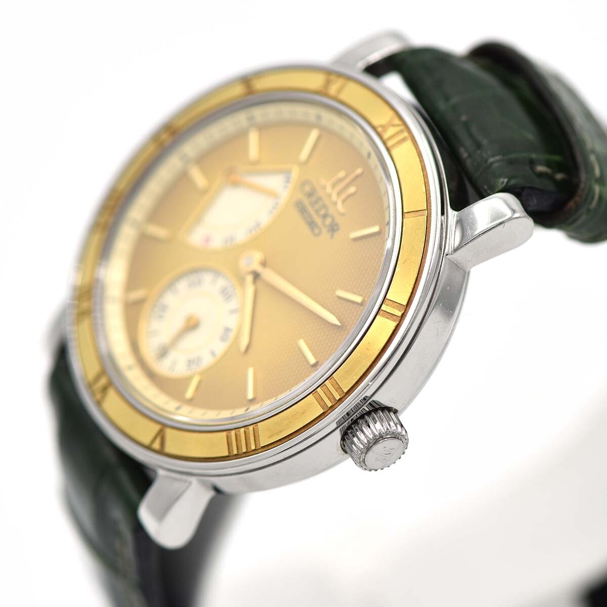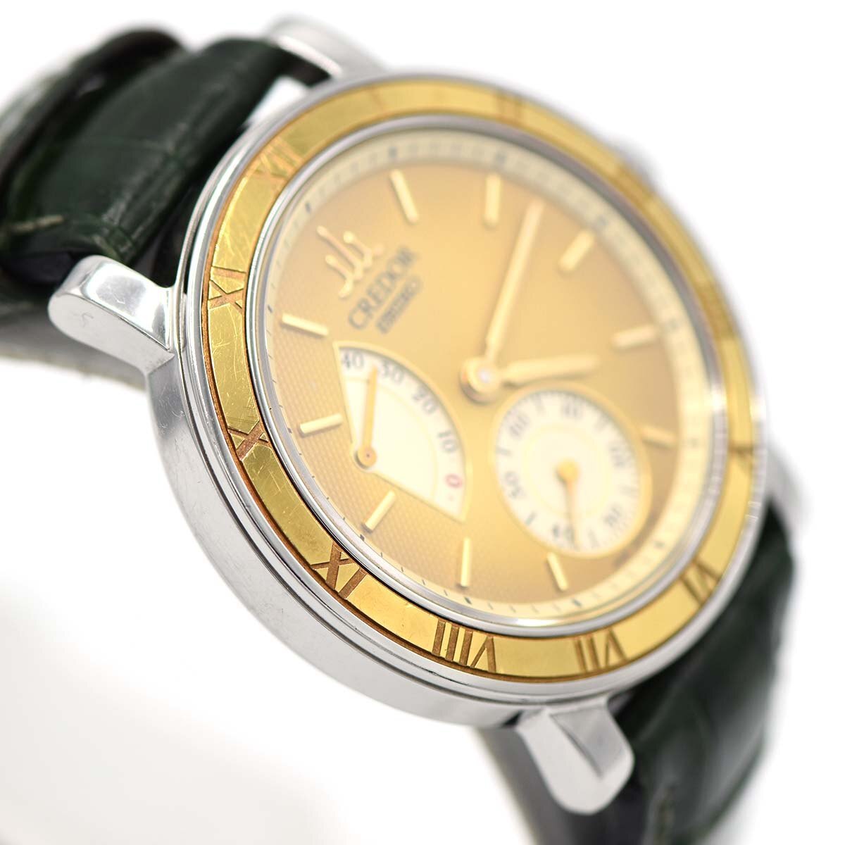 | セイコーのクレドール時計です。ABランク:ベゼルや裏蓋に小傷、針にややくすみが見受けられますが比較的きれいな商品かと思われます。現在稼働しております。タイムグラファー平置きで日差15秒程となっておりますが、姿勢差などによりますので参考程度にお考え下さい。修理やメンテナンスが必要になった場合は落札者様負担となりますのでご了承いただける方のみご入札をお願い致します。 |
