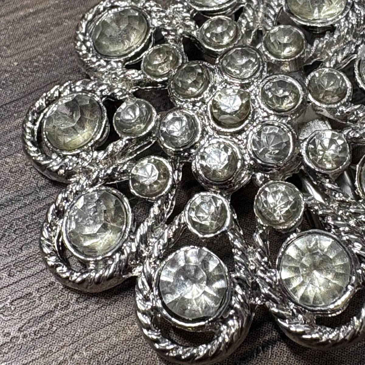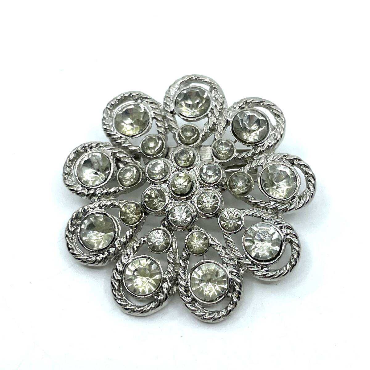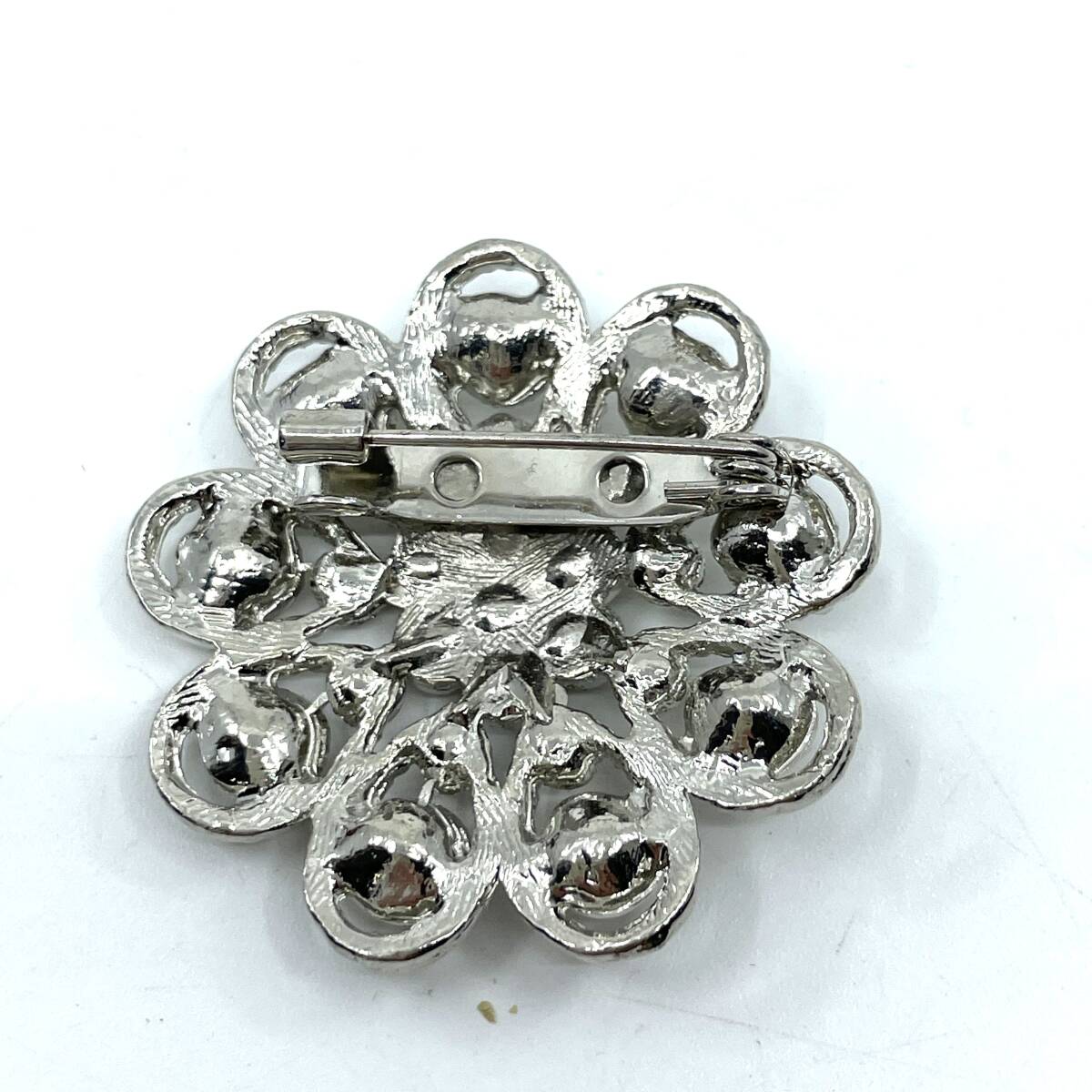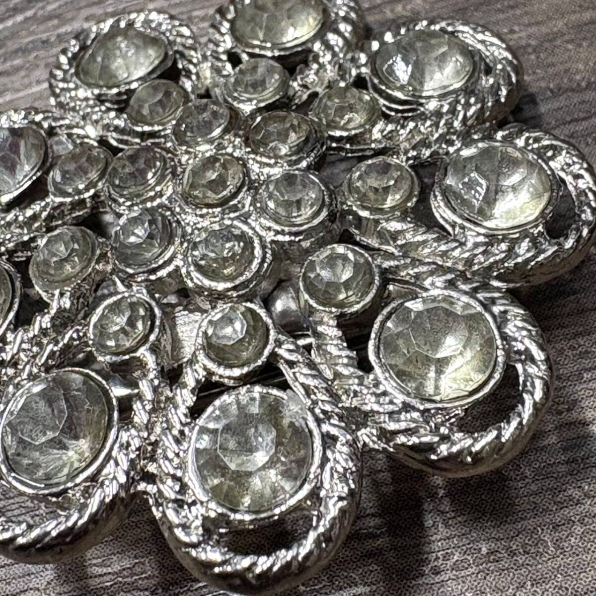 シルバー ブローチ フラワー 花 ラインストーン 石 ビジュー ラグジュアリー エレガント ワンポイント 3.6cm
