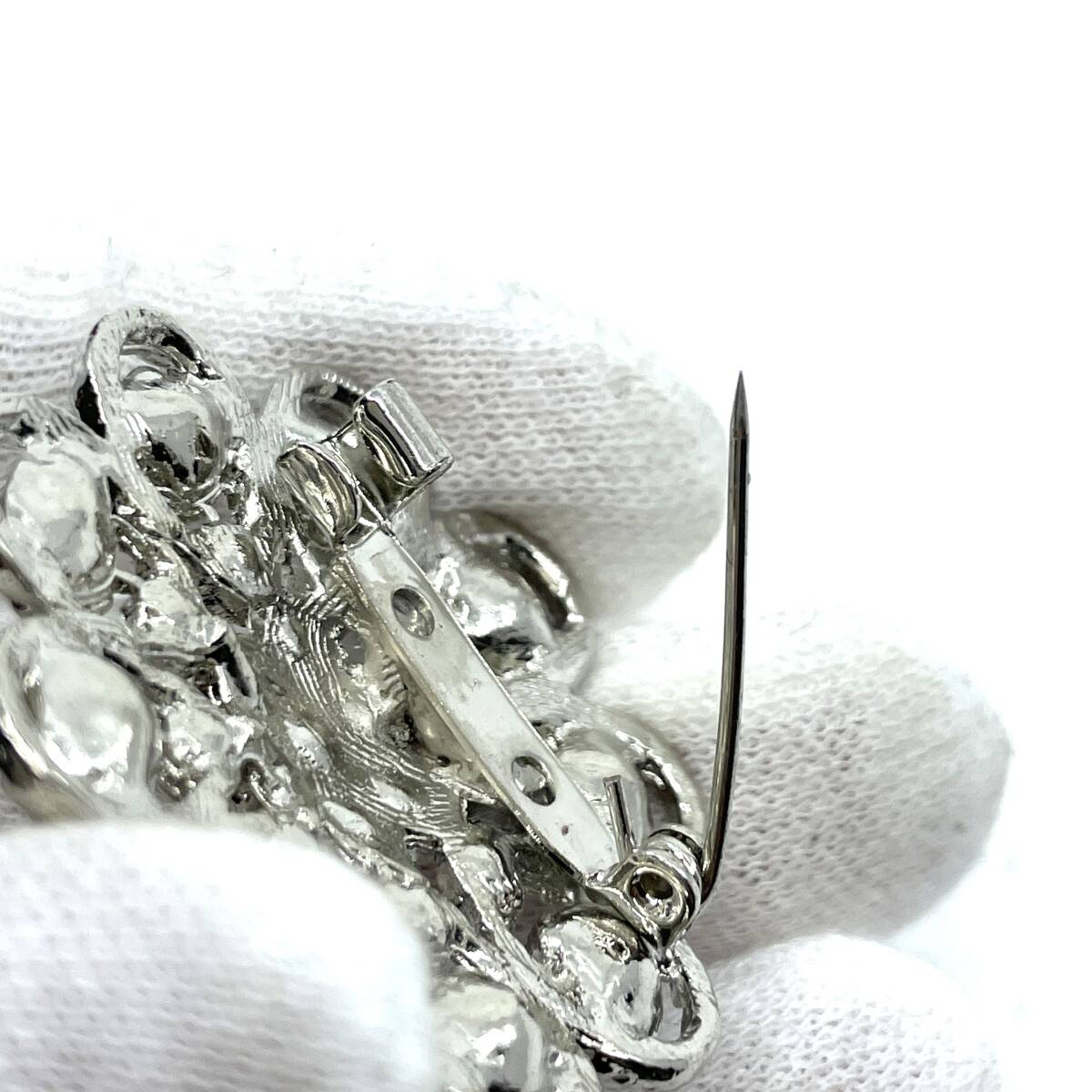 シルバー ブローチ フラワー 花 ラインストーン 石 ビジュー ラグジュアリー エレガント